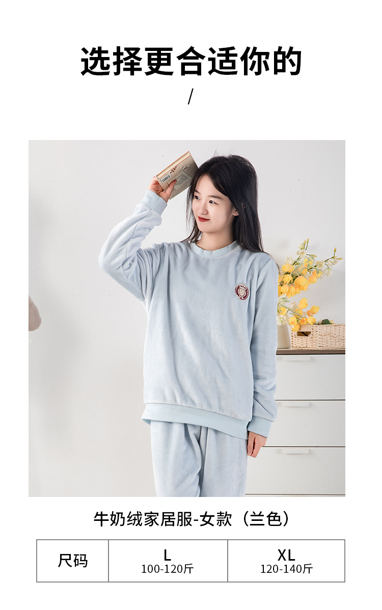 多喜爱 牛奶绒家居服圆领款(兰/灰)