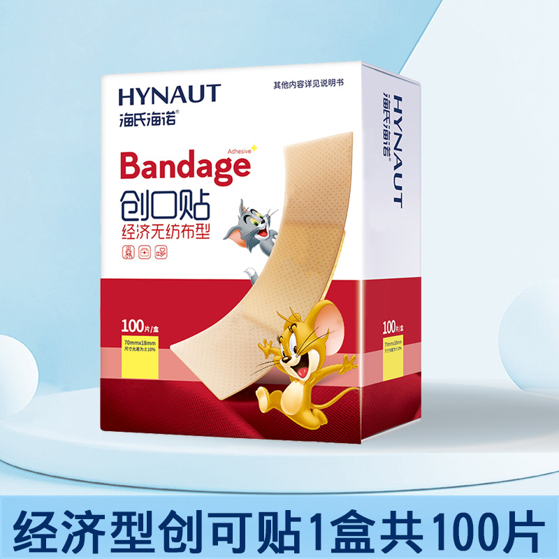 海氏海诺创口贴弹力经济无纺布型透明防水学生大号家用100片 1盒