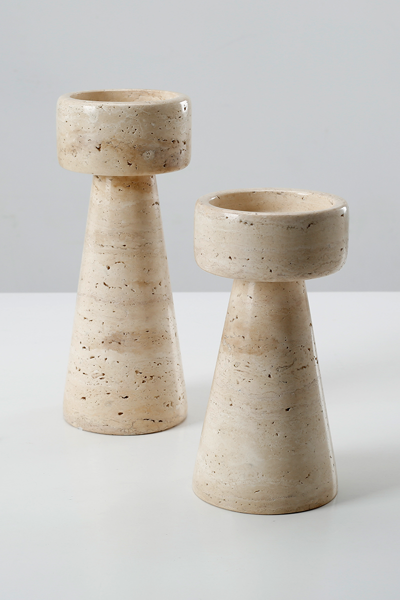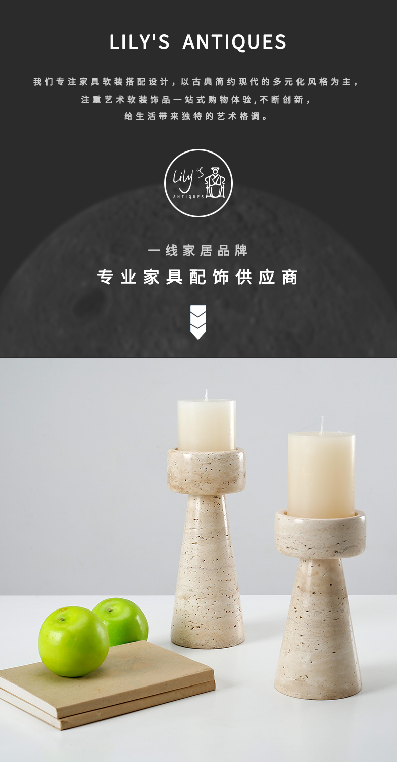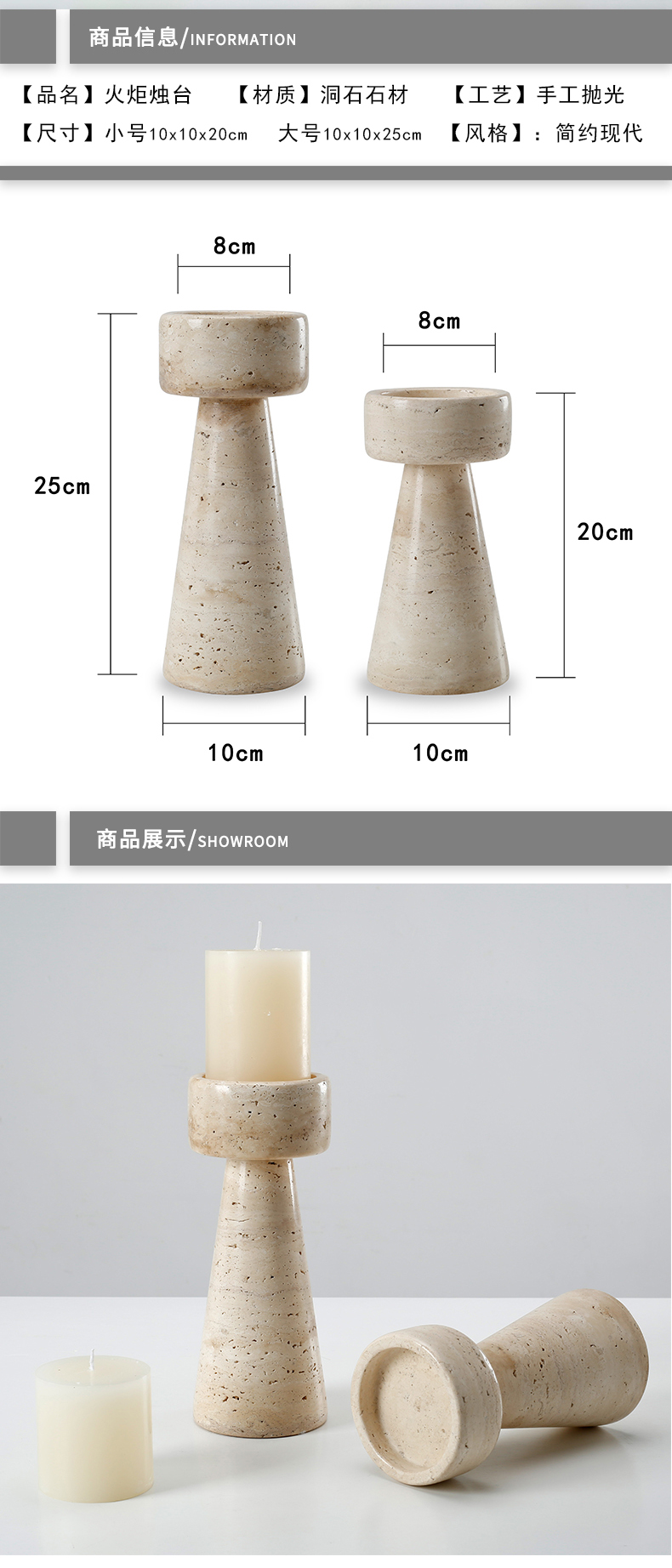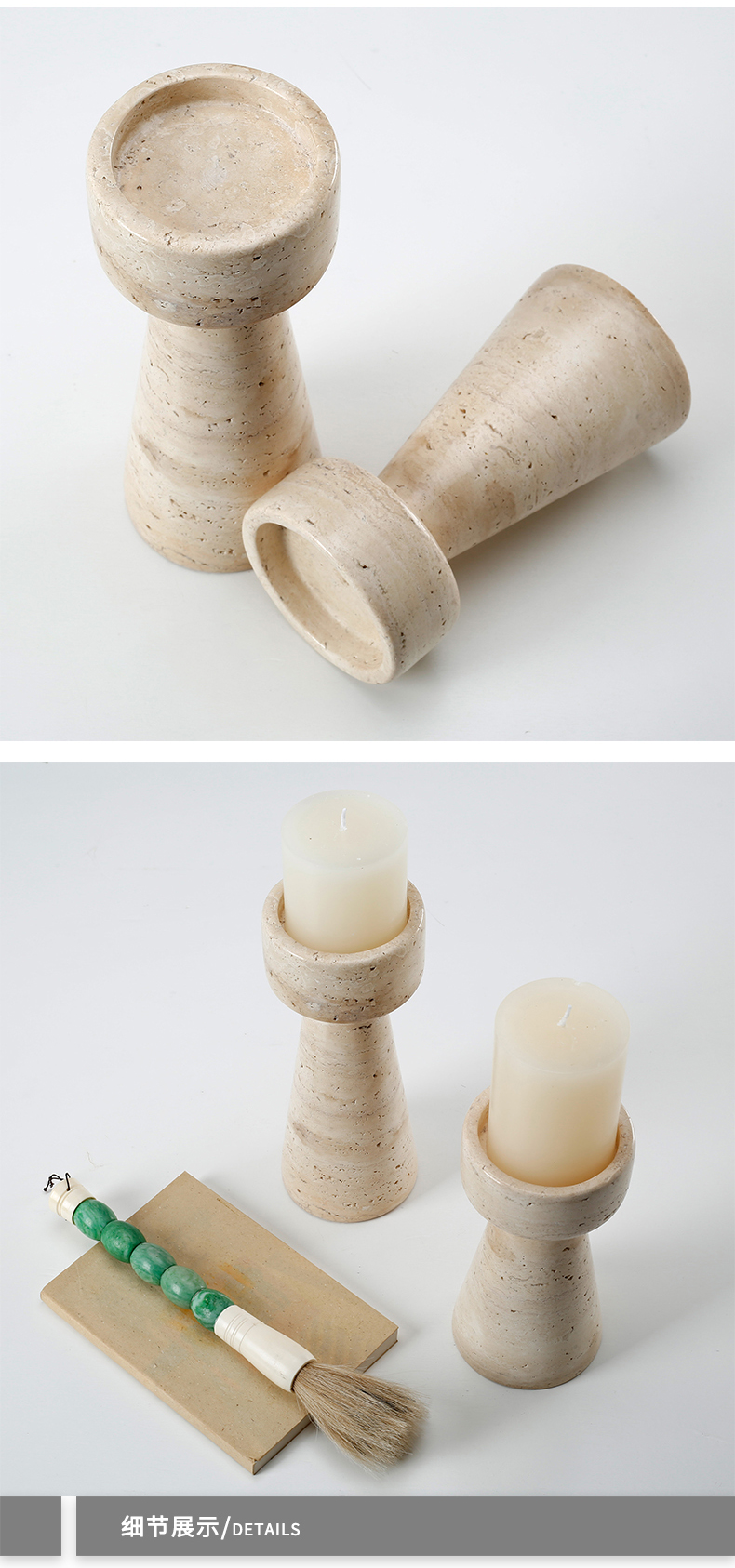 简约侘寂风黄色洞石火炬烛台摆件样板间售楼处客厅茶几民宿装饰品