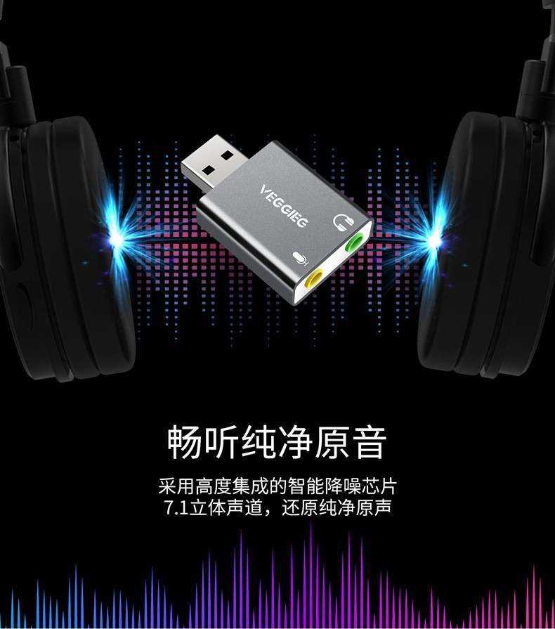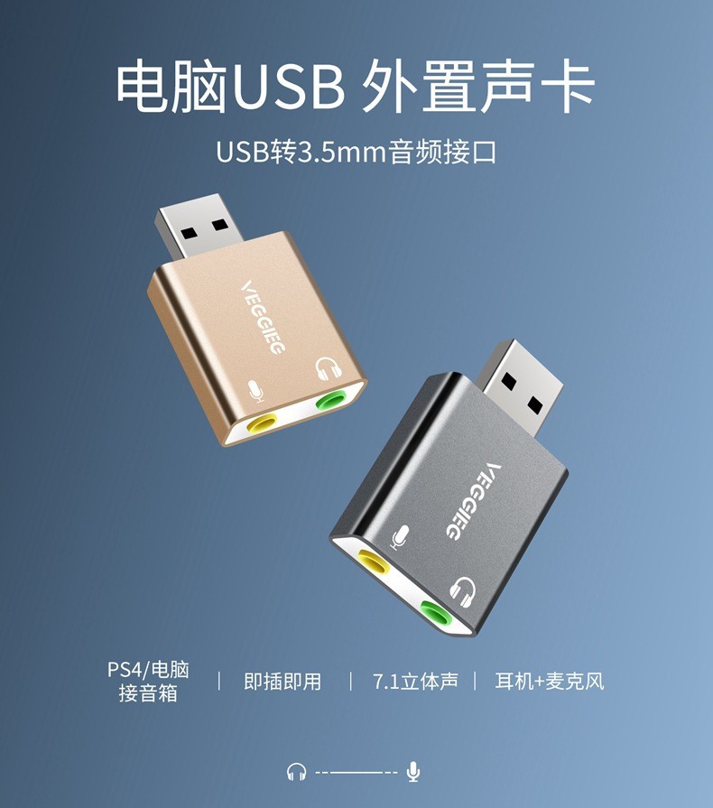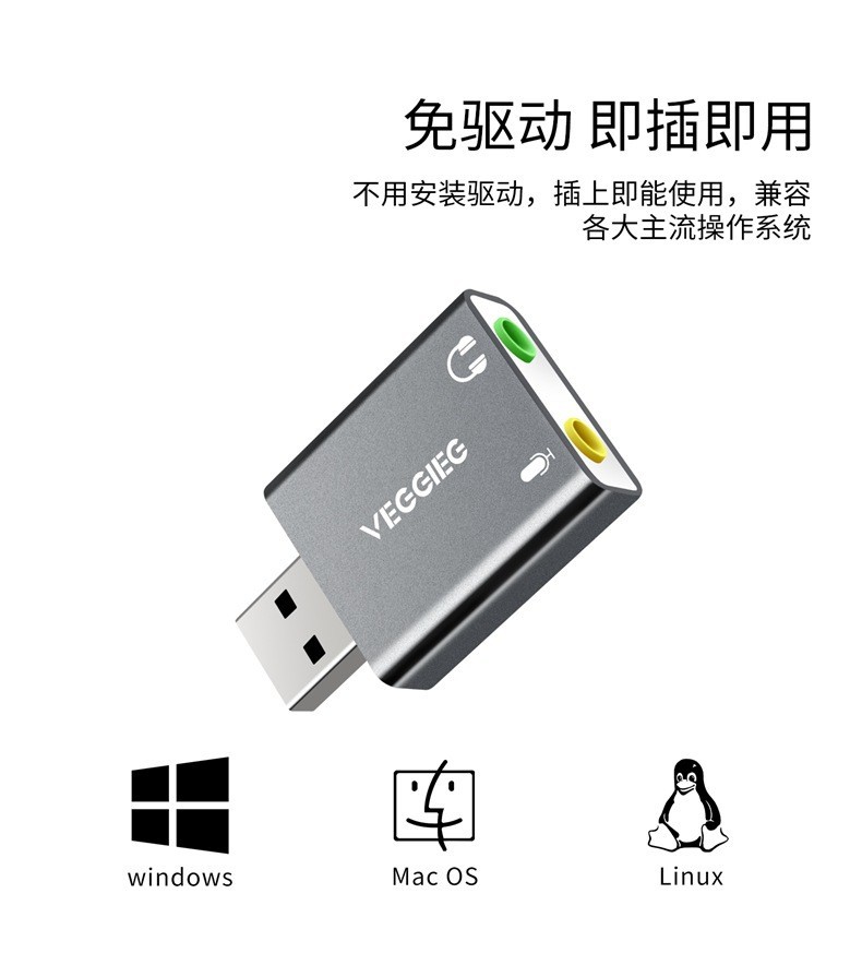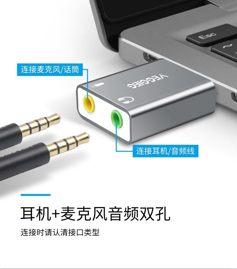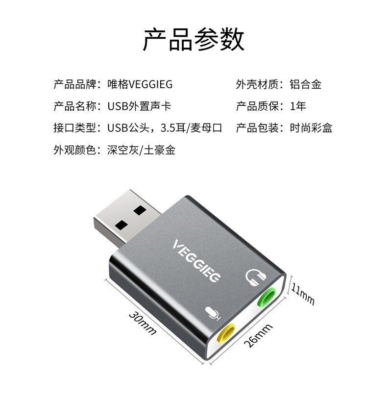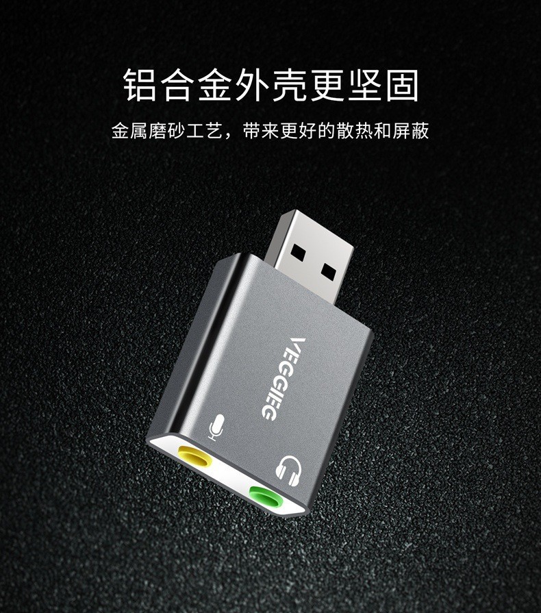严选【铝合金外壳 免驱动】USB外置声卡 铝合金笔记本电脑外接耳机独立声卡1个