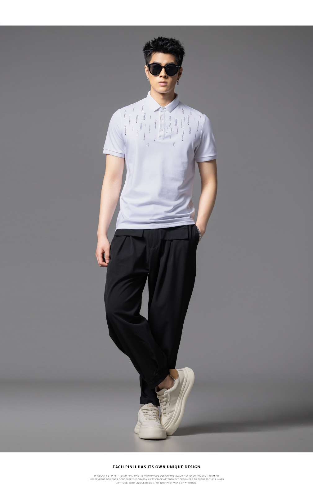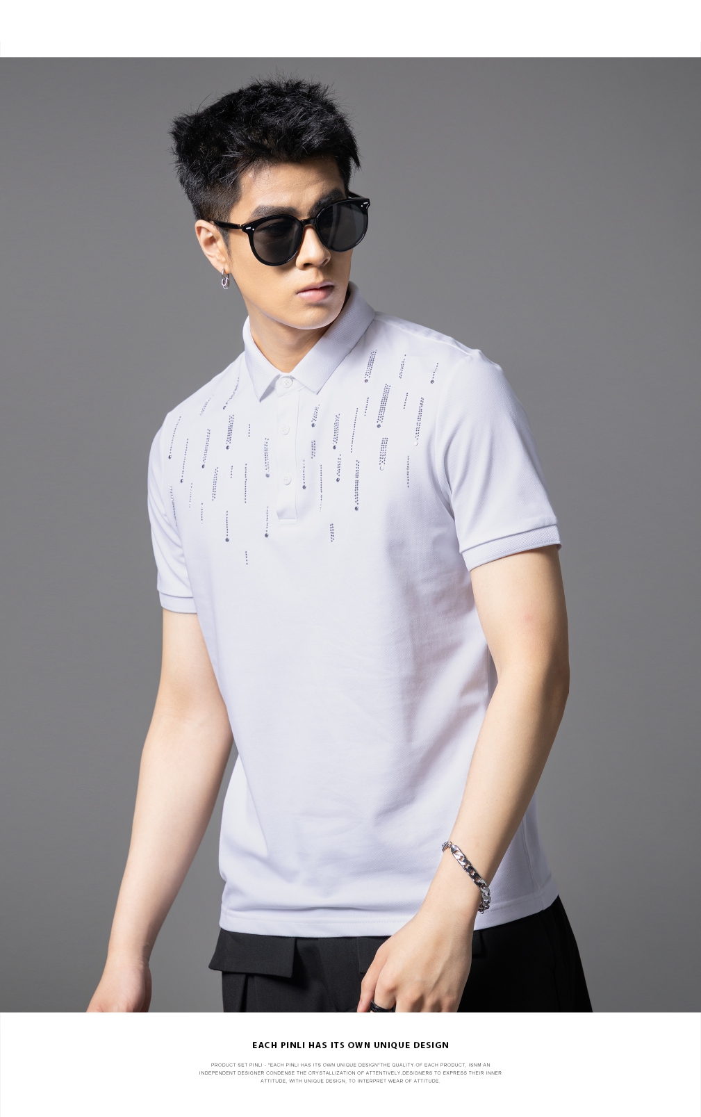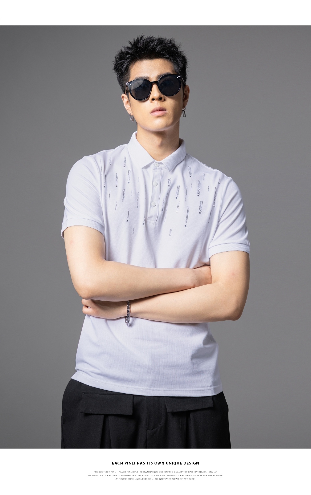 PINLI品立2025夏季新款商务休闲短袖POLO衫男士烫钻修身百搭上衣BG252112092
