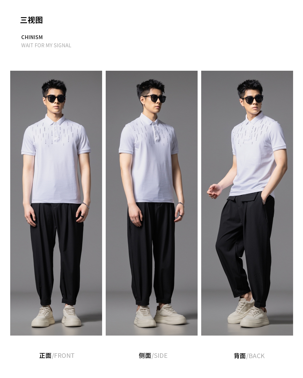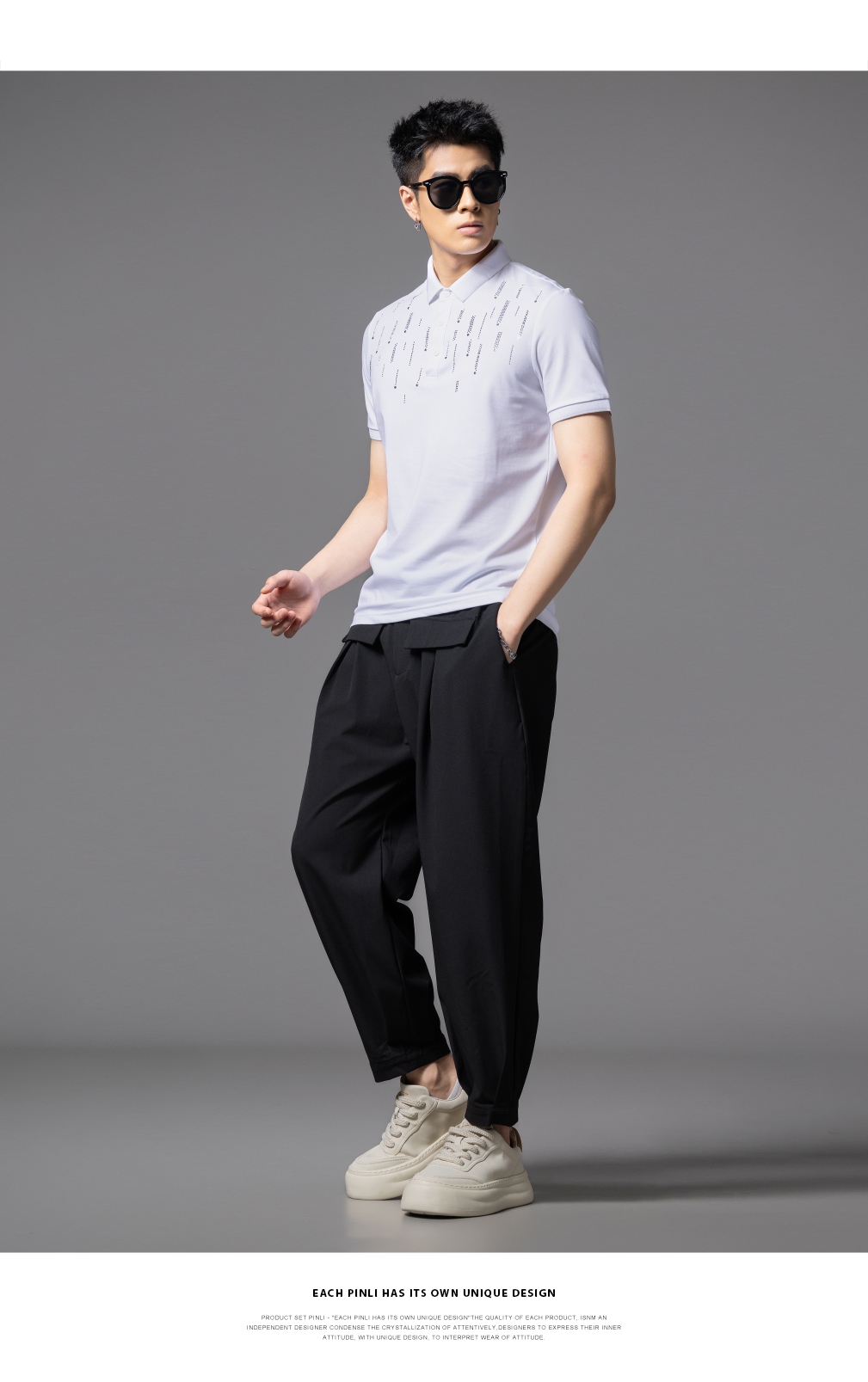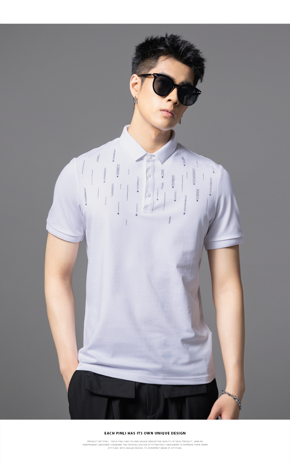 PINLI品立2025夏季新款商务休闲短袖POLO衫男士烫钻修身百搭上衣BG252112092