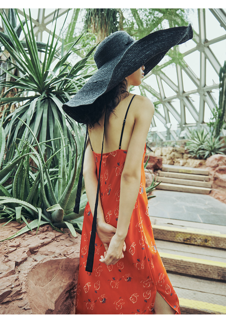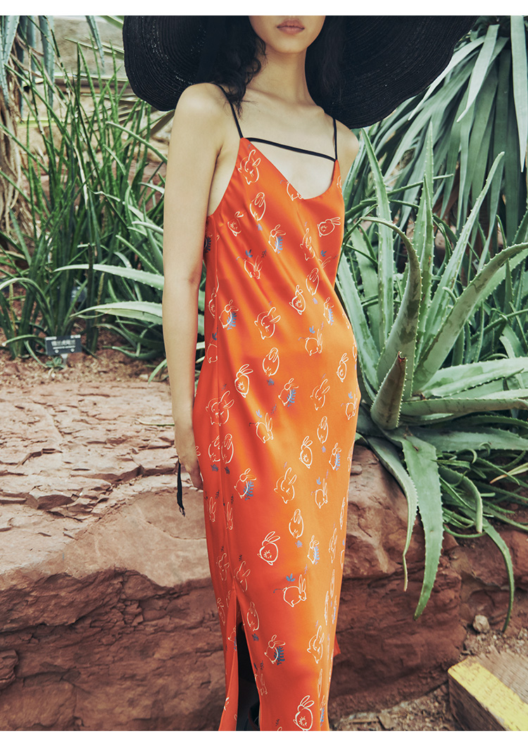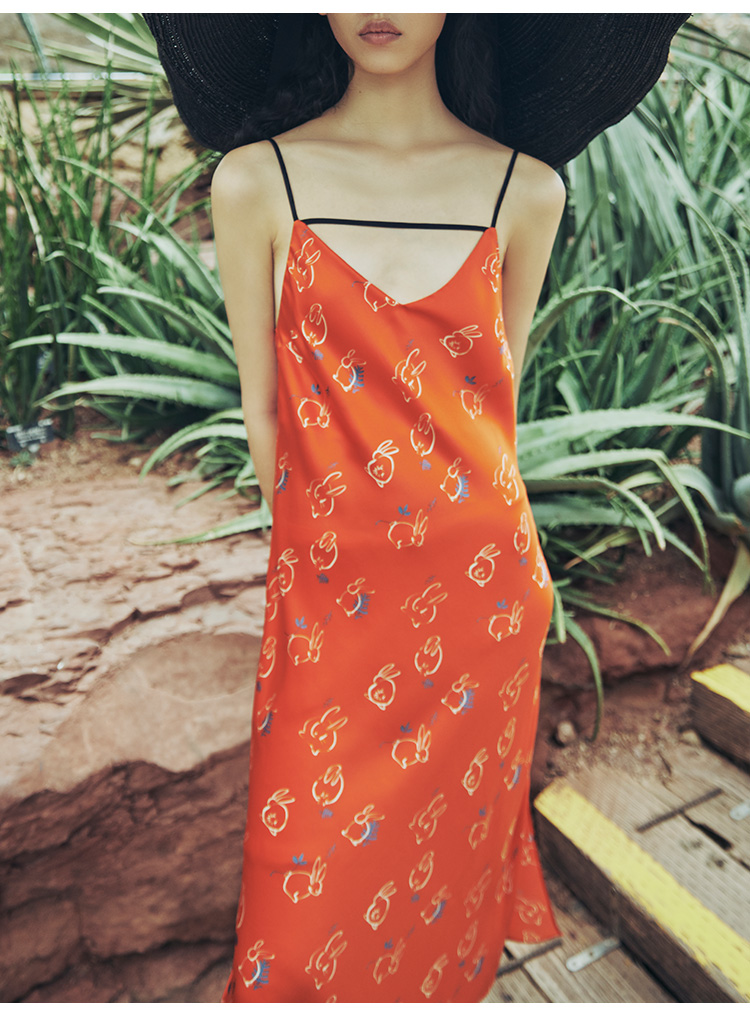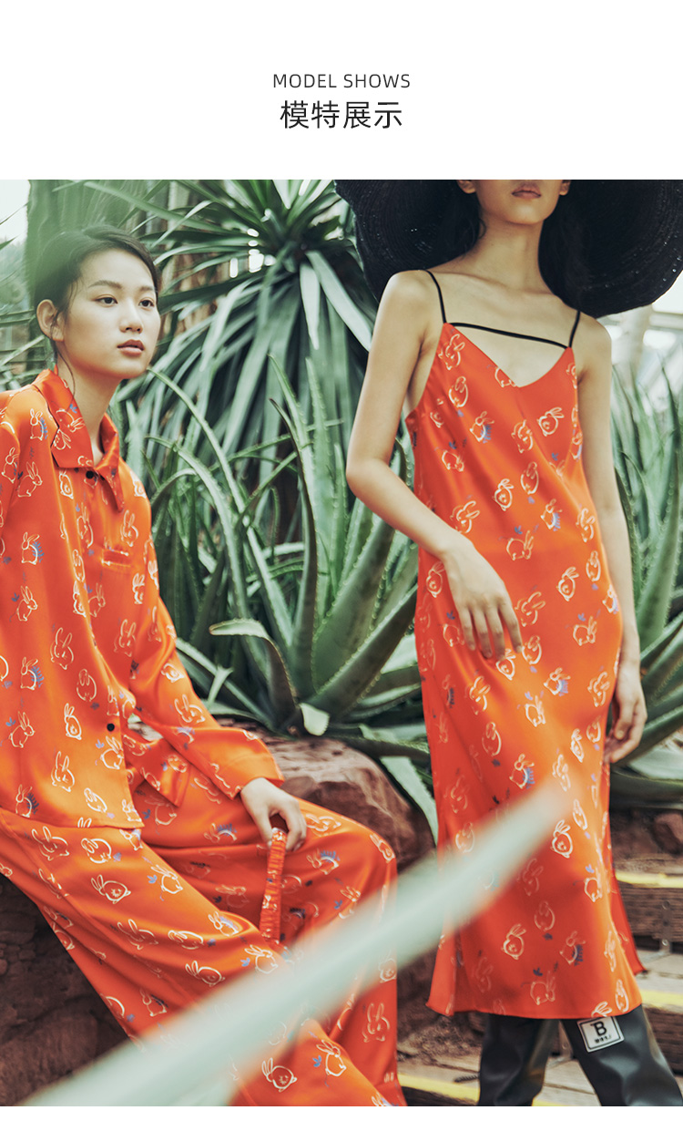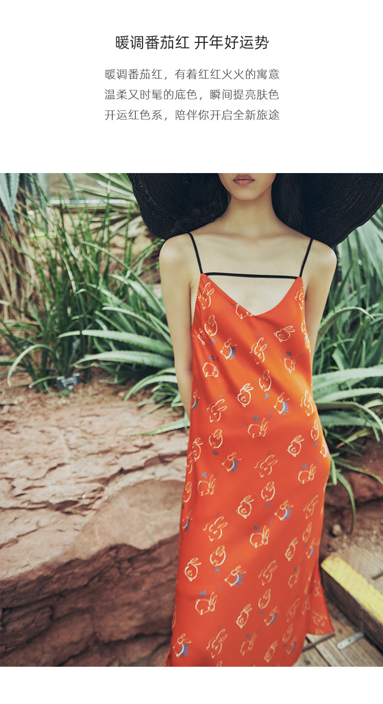 SANGLUO桑罗兔年红红红真丝睡裙性感slipdress