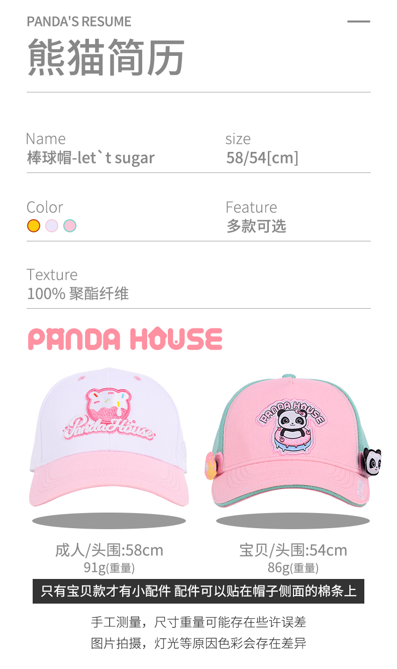熊猫屋PANDAHOUSE 棒球帽let's sugar 亲子款
