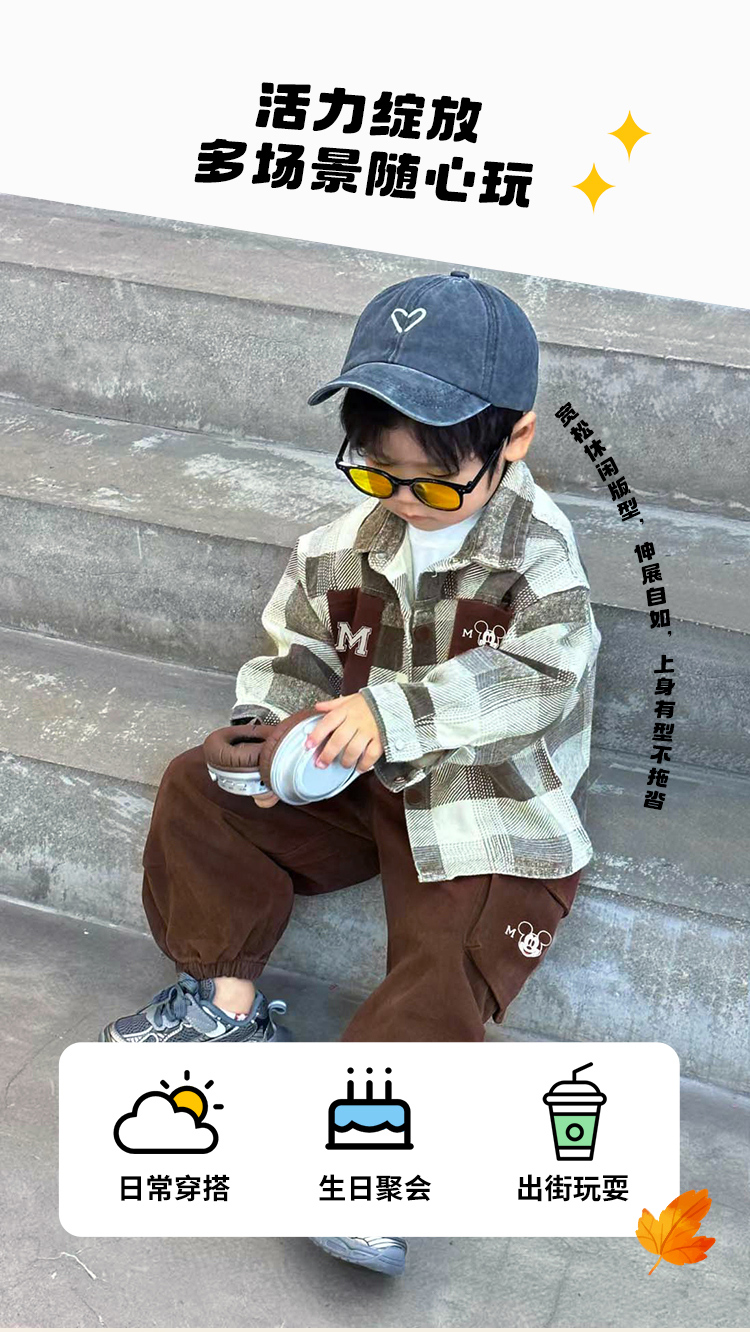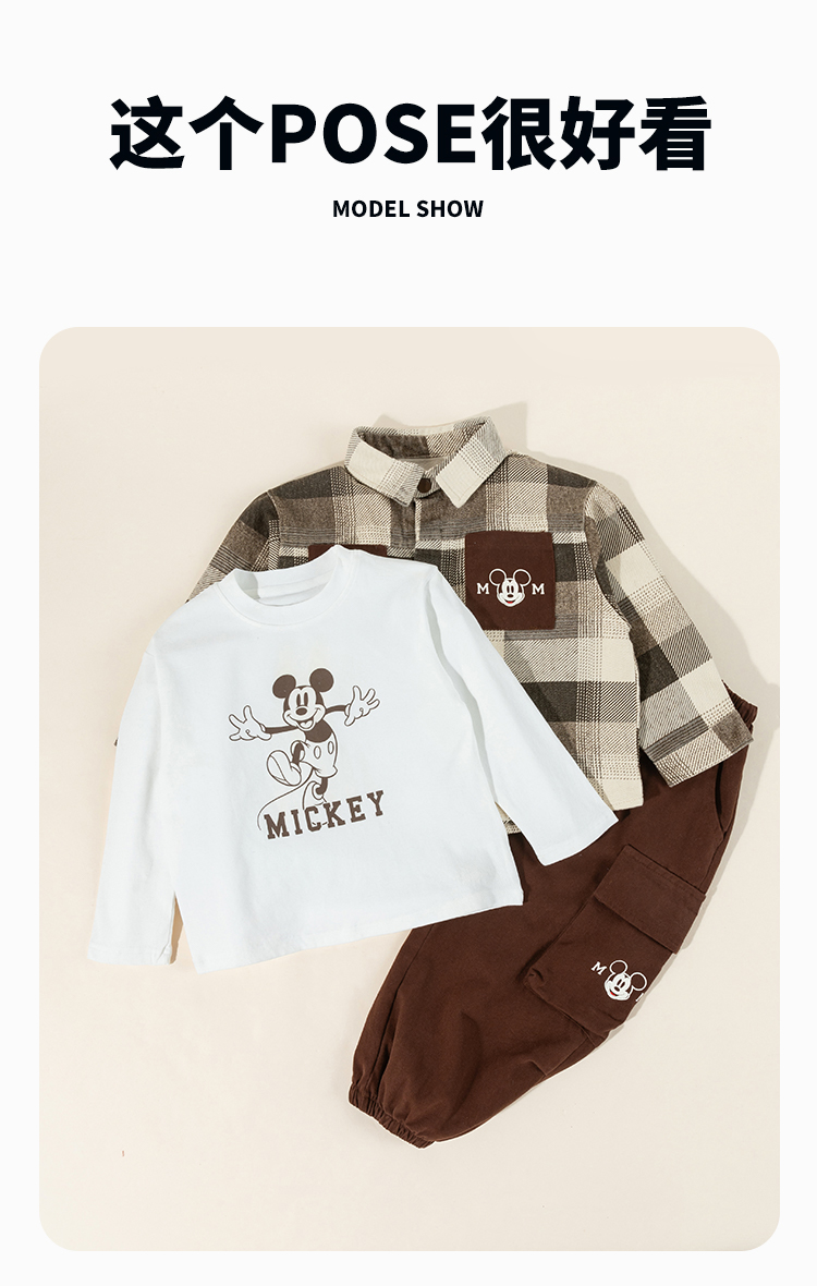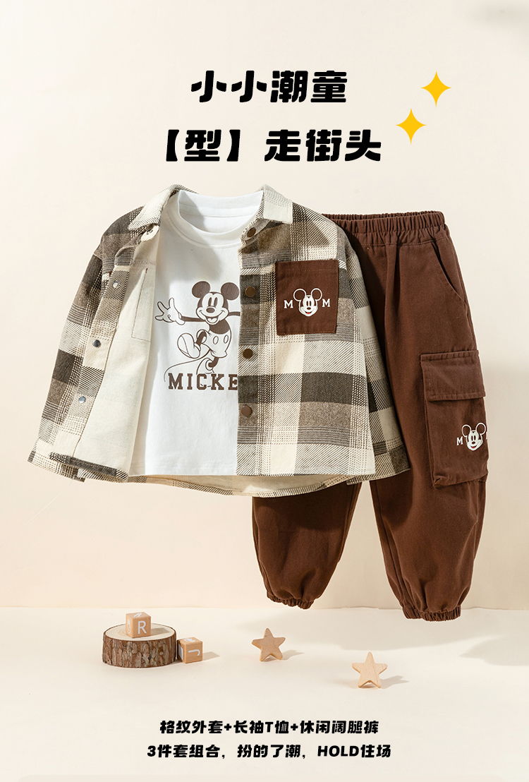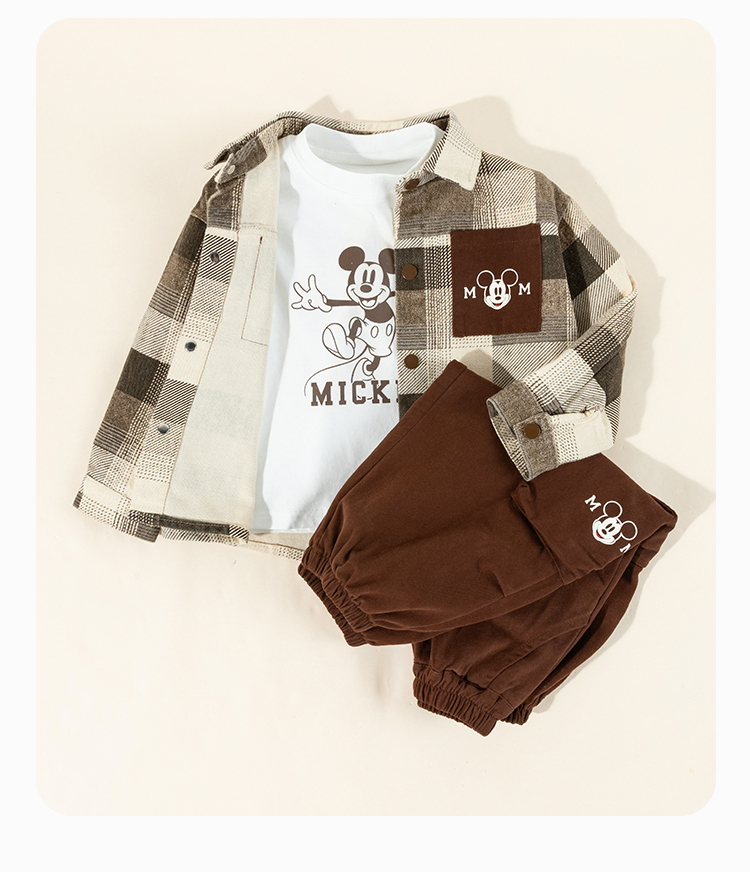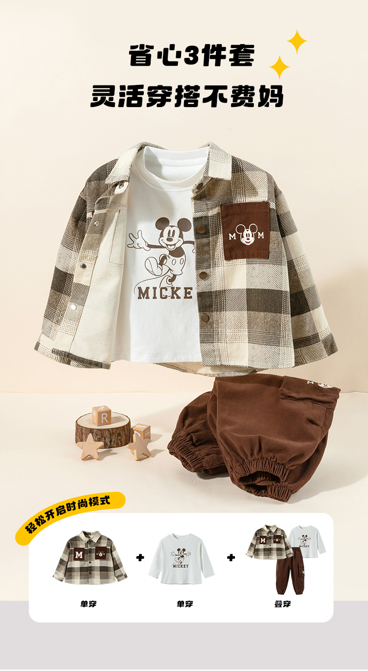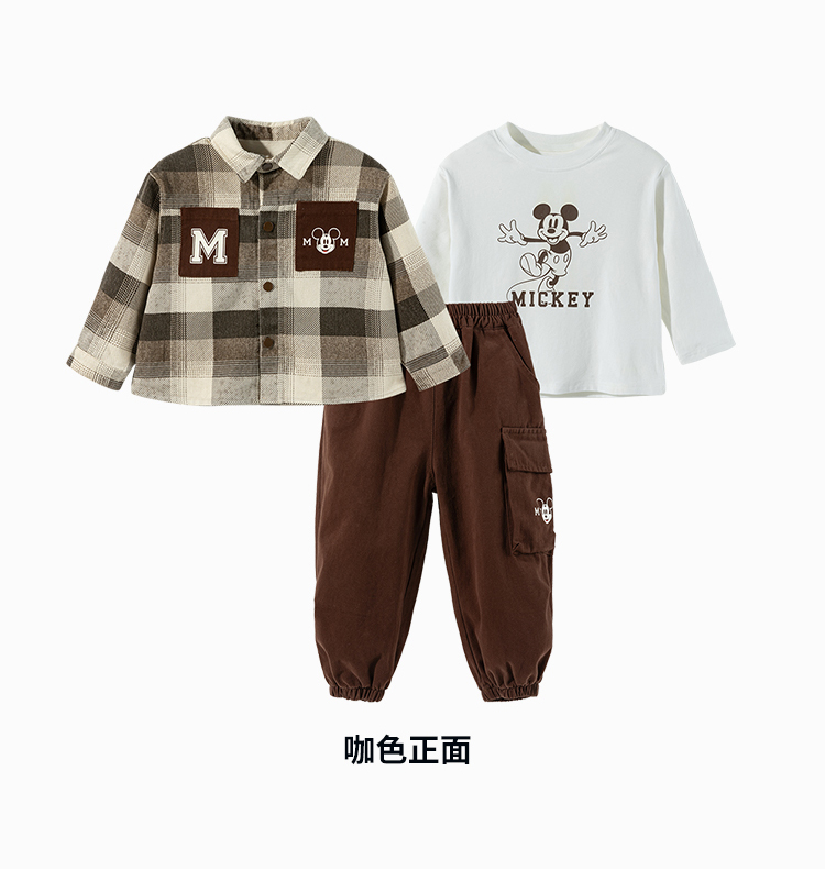 迪士尼【假期出游】秋冬季新款男童米奇印花外套纯棉T恤休闲束脚裤三件套ZD3DT045