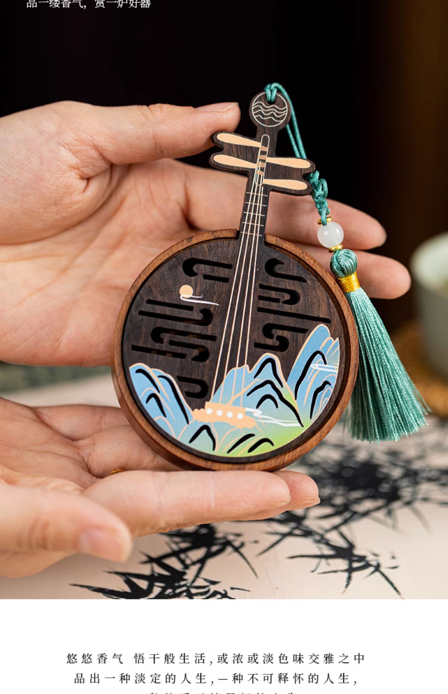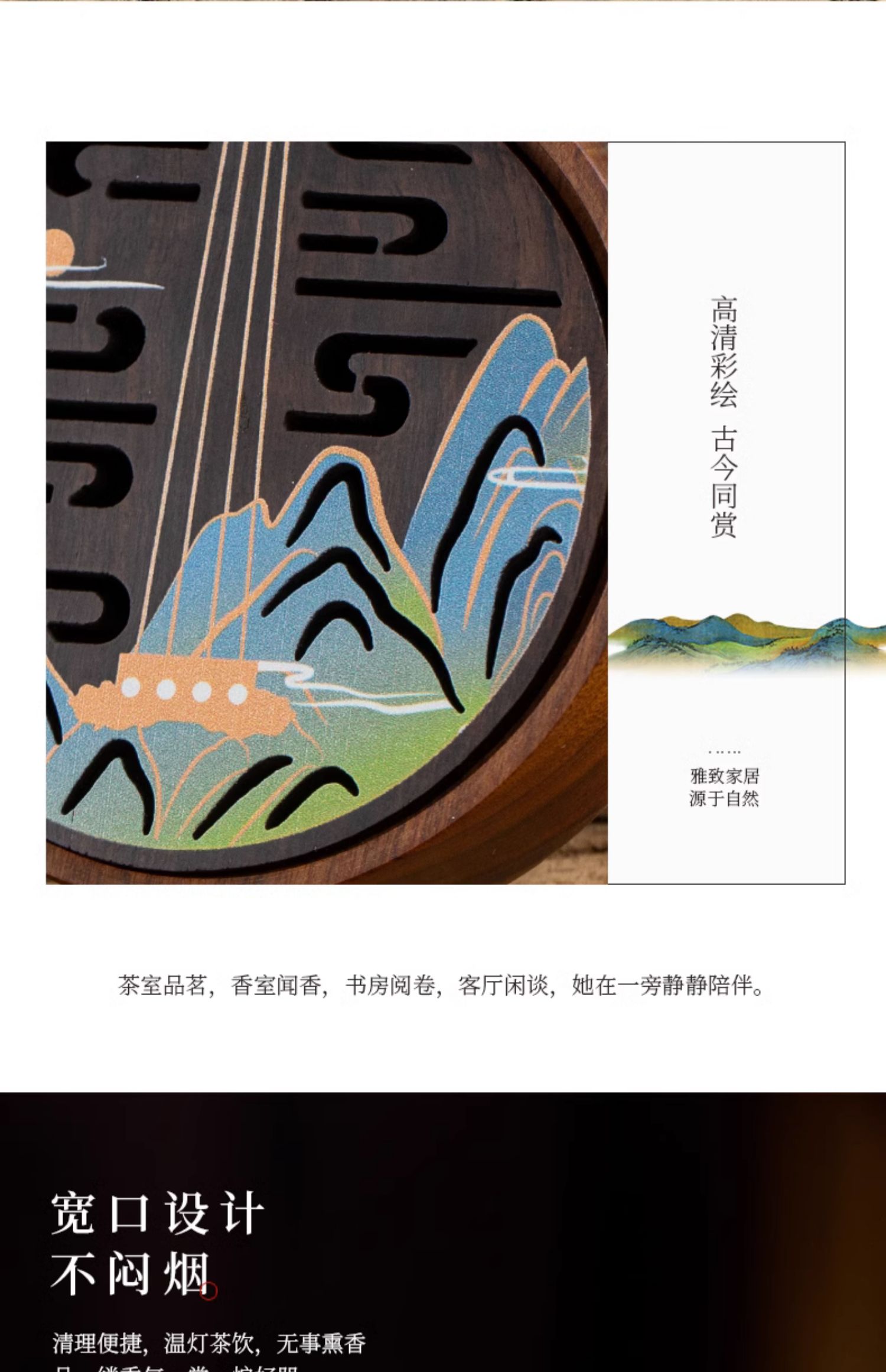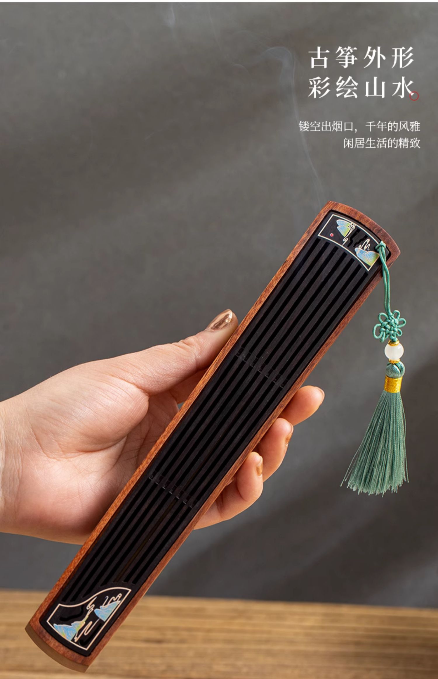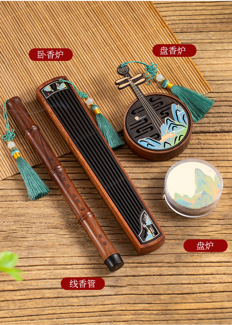 江山如画木质香插线香盒盘香炉家用室内创意檀香炉古风香薰炉新中式卧香炉