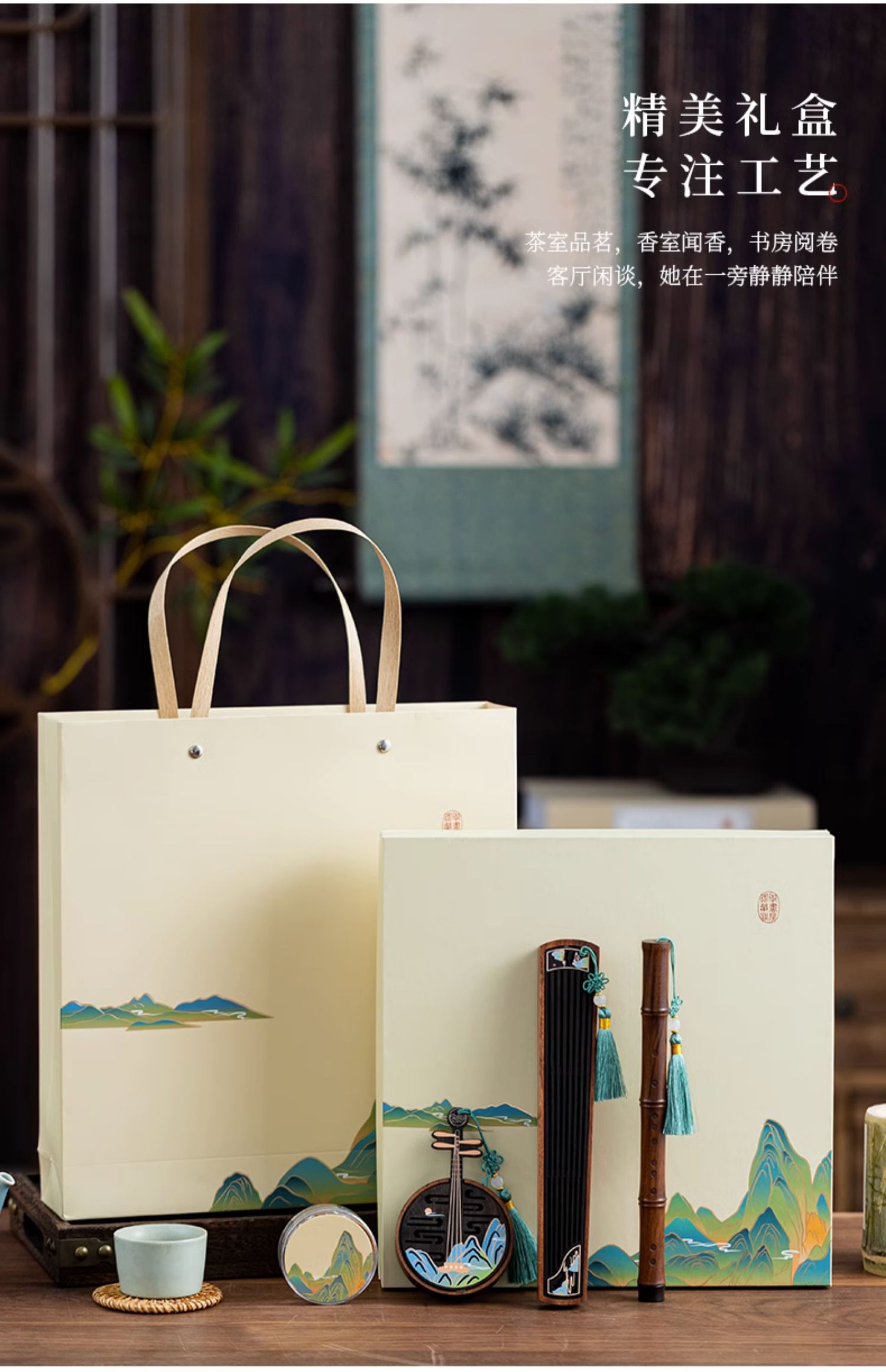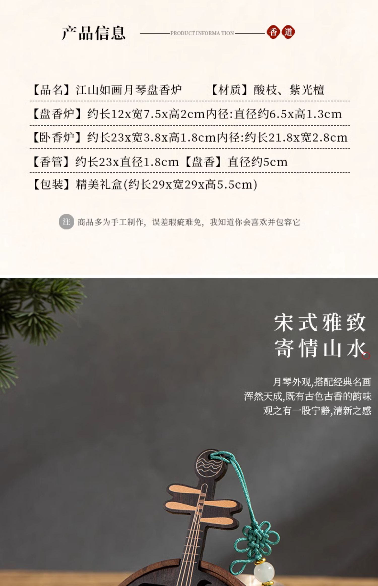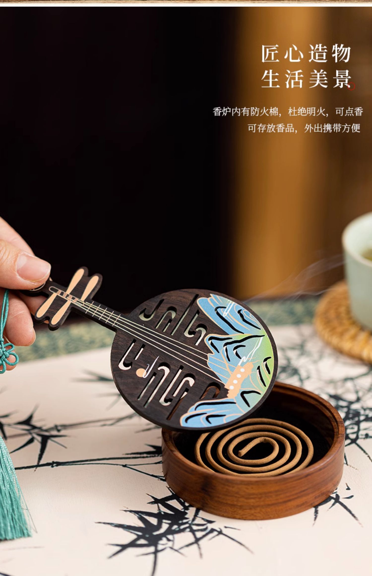 江山如画木质香插线香盒盘香炉家用室内创意檀香炉古风香薰炉新中式卧香炉