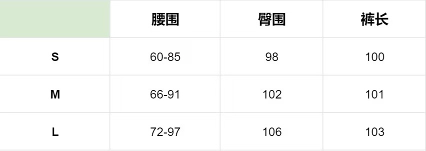 S松紧腰腰围适合1尺8-2尺1, 臀围104cm,大腿围62cm,脚口62cm,裤长99cm,适合90-115斤,小静100斤穿S随身~