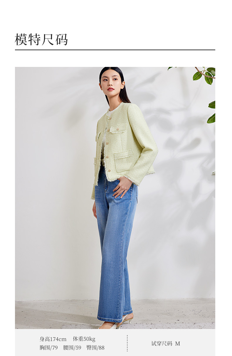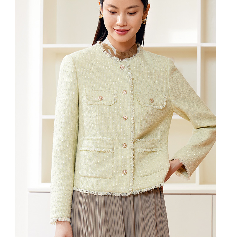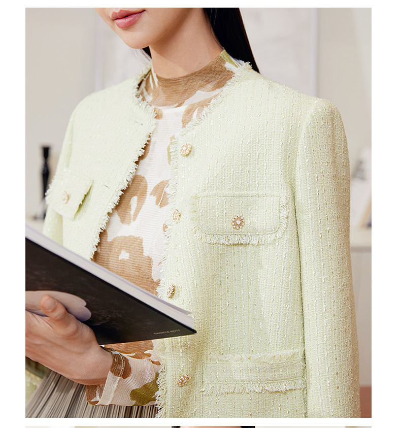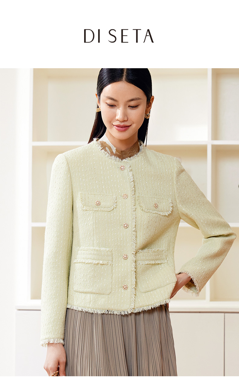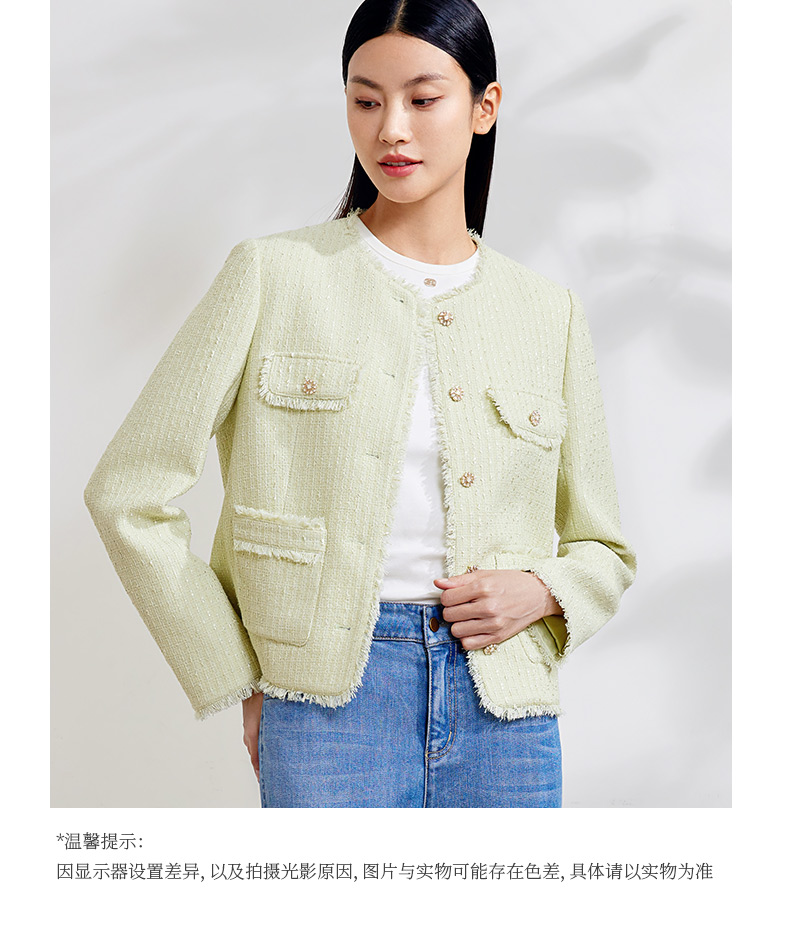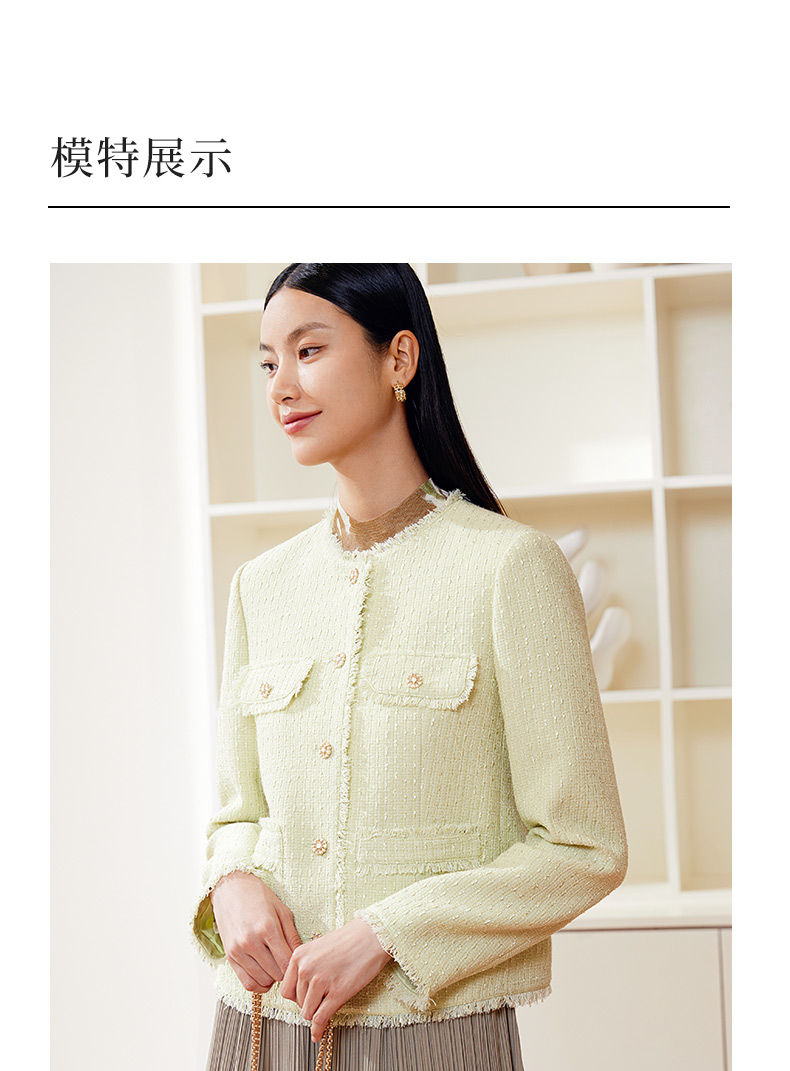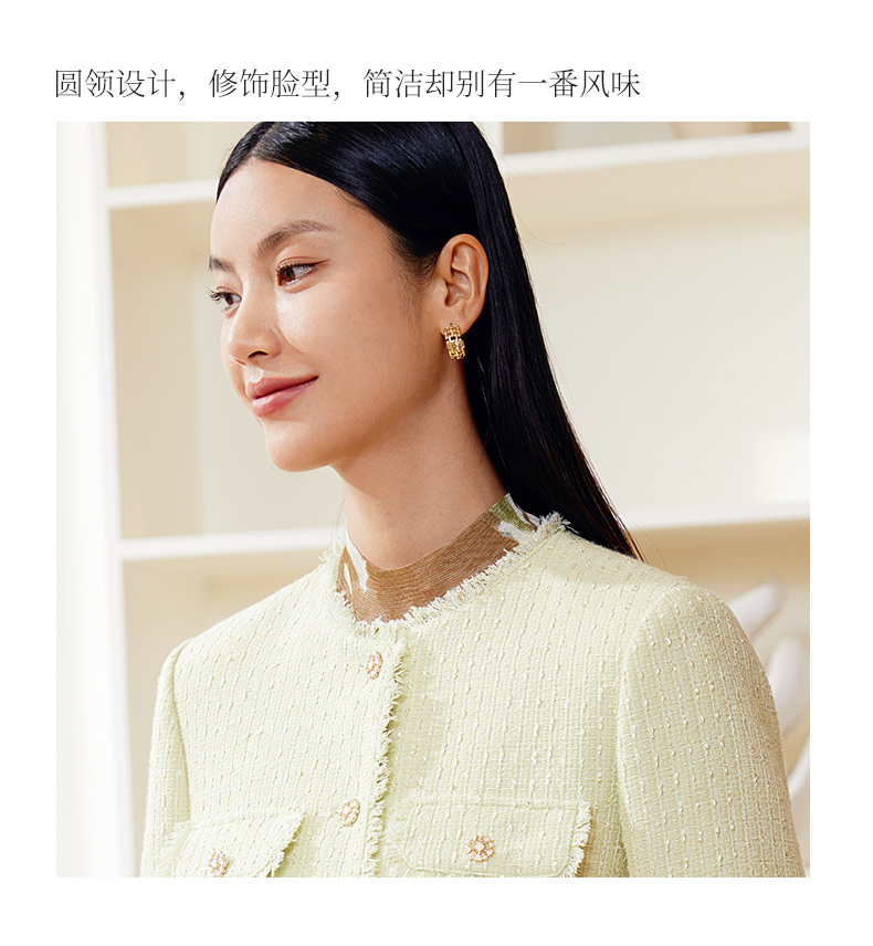 玳莎拉毛圆领小香风外套女式2024春季新款气质优雅法式设计感上衣 EA37303