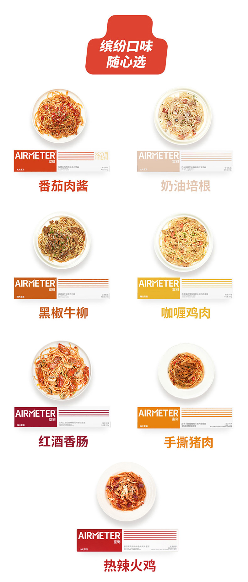 【好吃的】空刻AIRMETER 意面 经典番茄肉酱意面 咖喱土豆鸡肉意面 黑椒牛柳意面 奶油培根意面 热辣火鸡意面 快手早餐