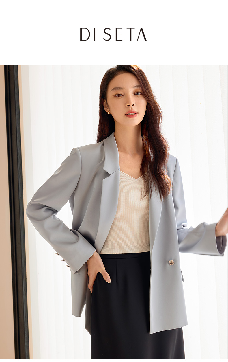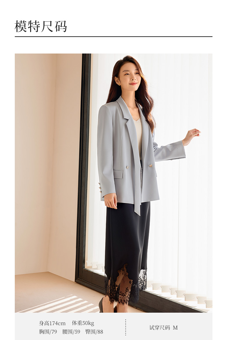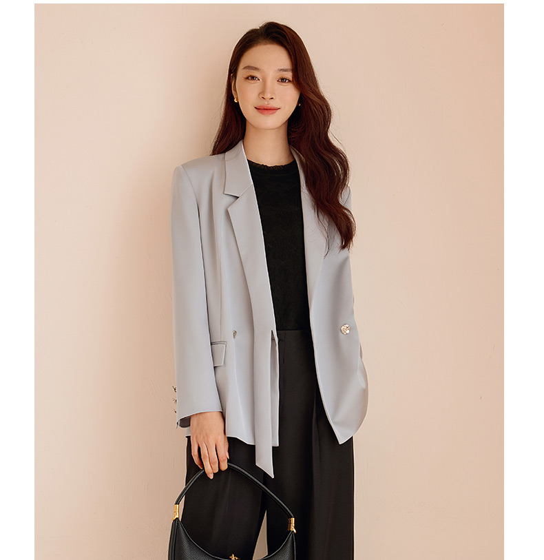 玳莎设计感飘带廓形西装女2025年春季新款气质高级感微垫肩外套 FA37302