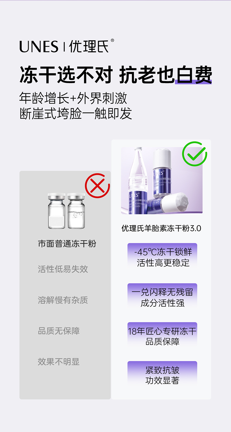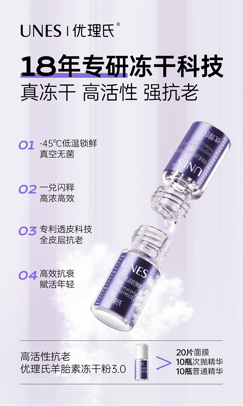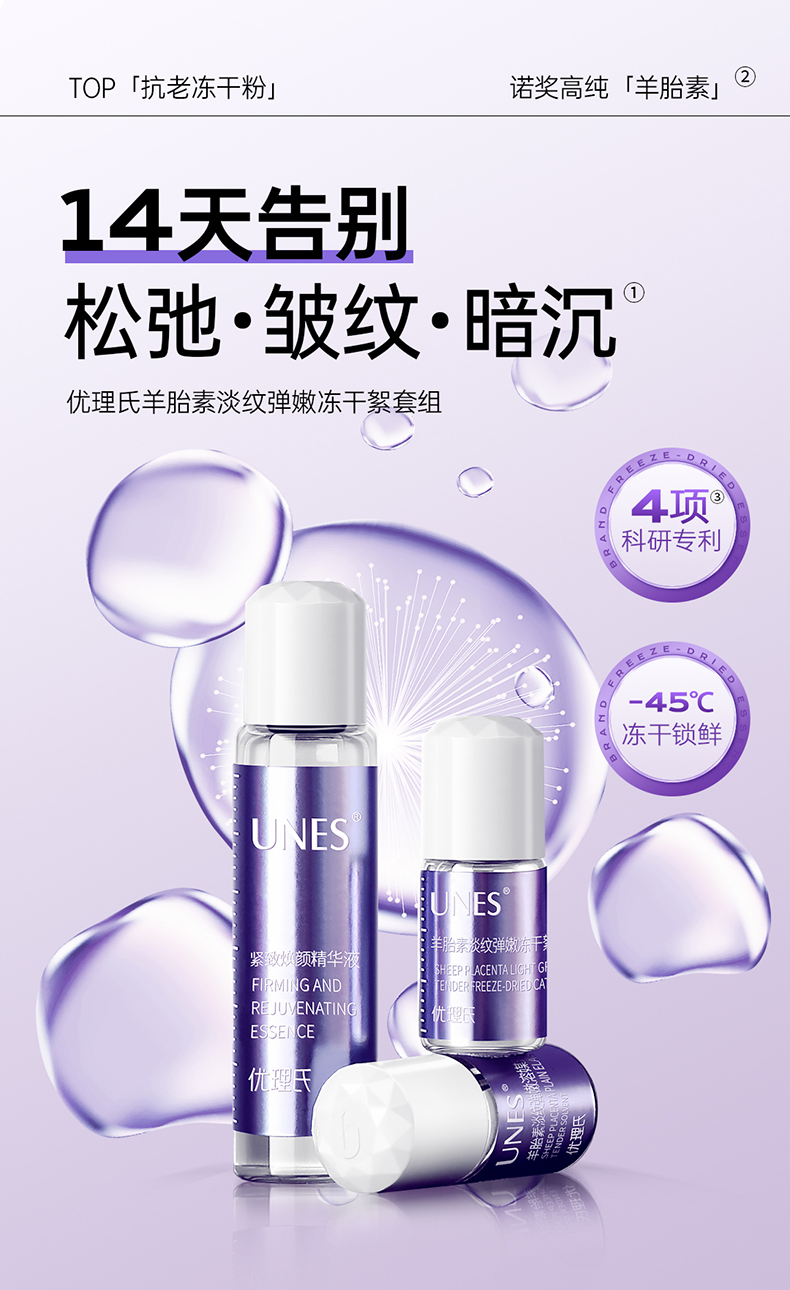 【2周淡纹】优理氏羊胎素淡纹弹嫩冻干絮套组3.0组合 紧致淡纹抗皱抗衰老精华细胞级抗皱精华