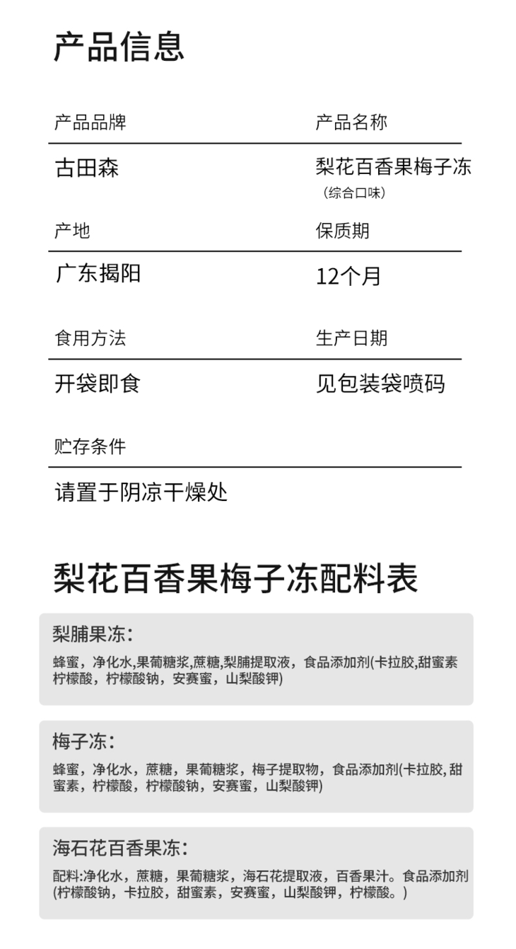 【口味】海石花百香果冻/梨脯果冻/梅子果冻