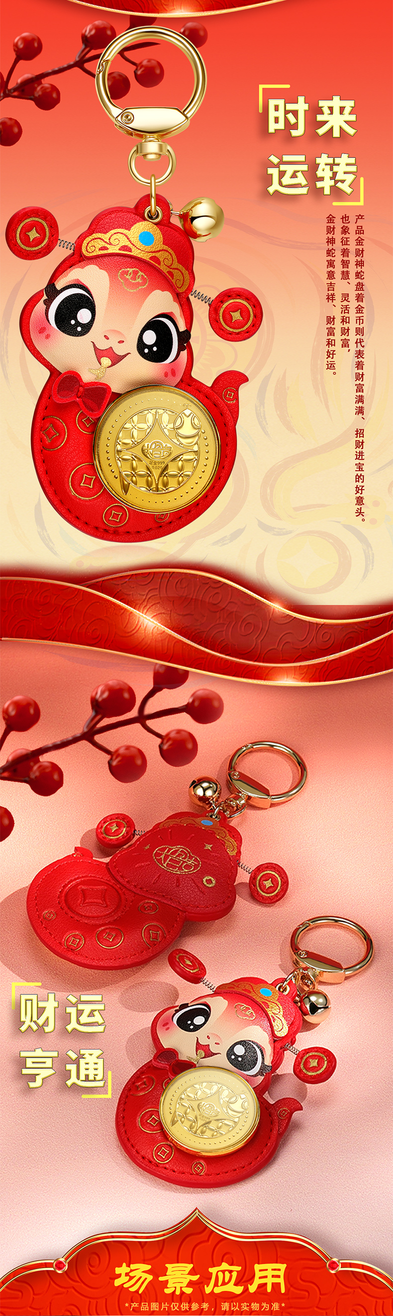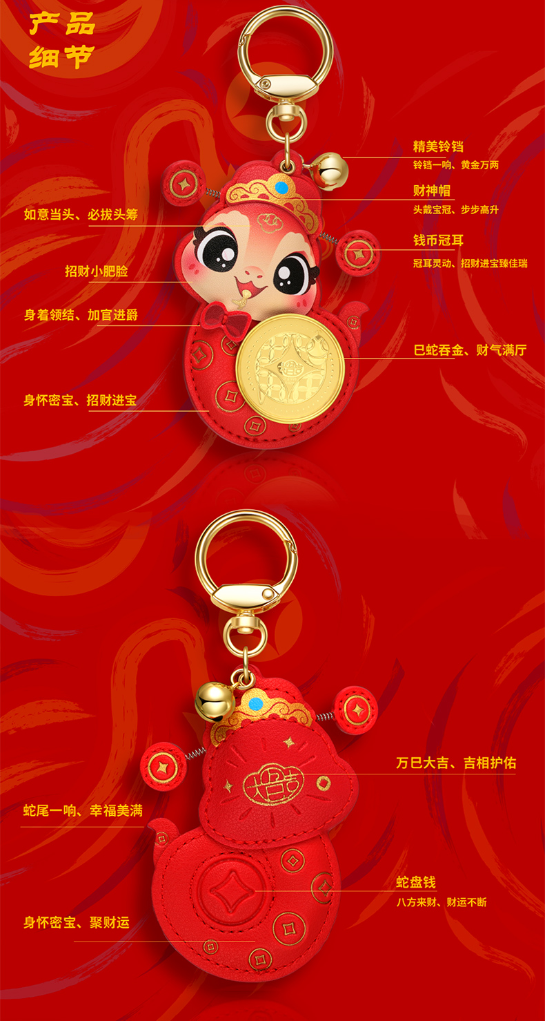【宫里挂件】万巳大吉-招财蛇挂件钥匙扣 999足金