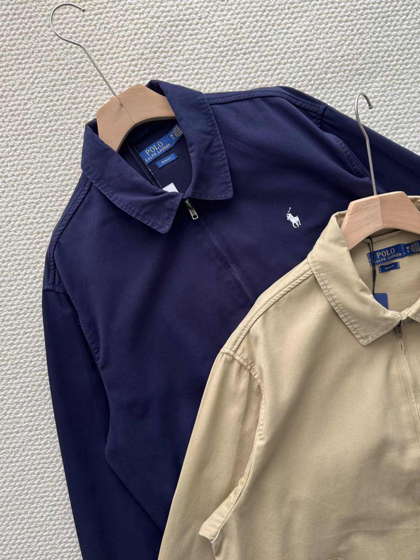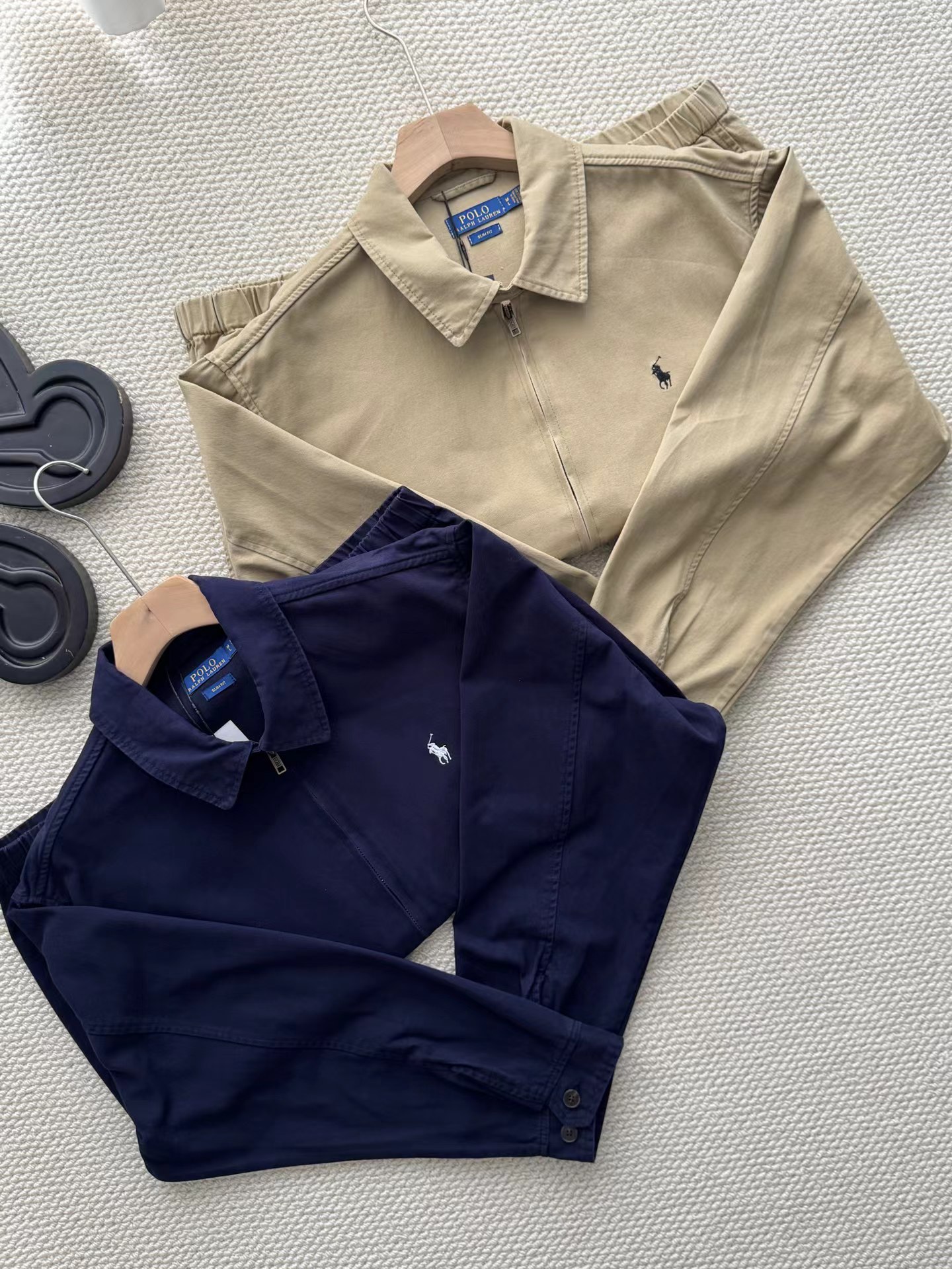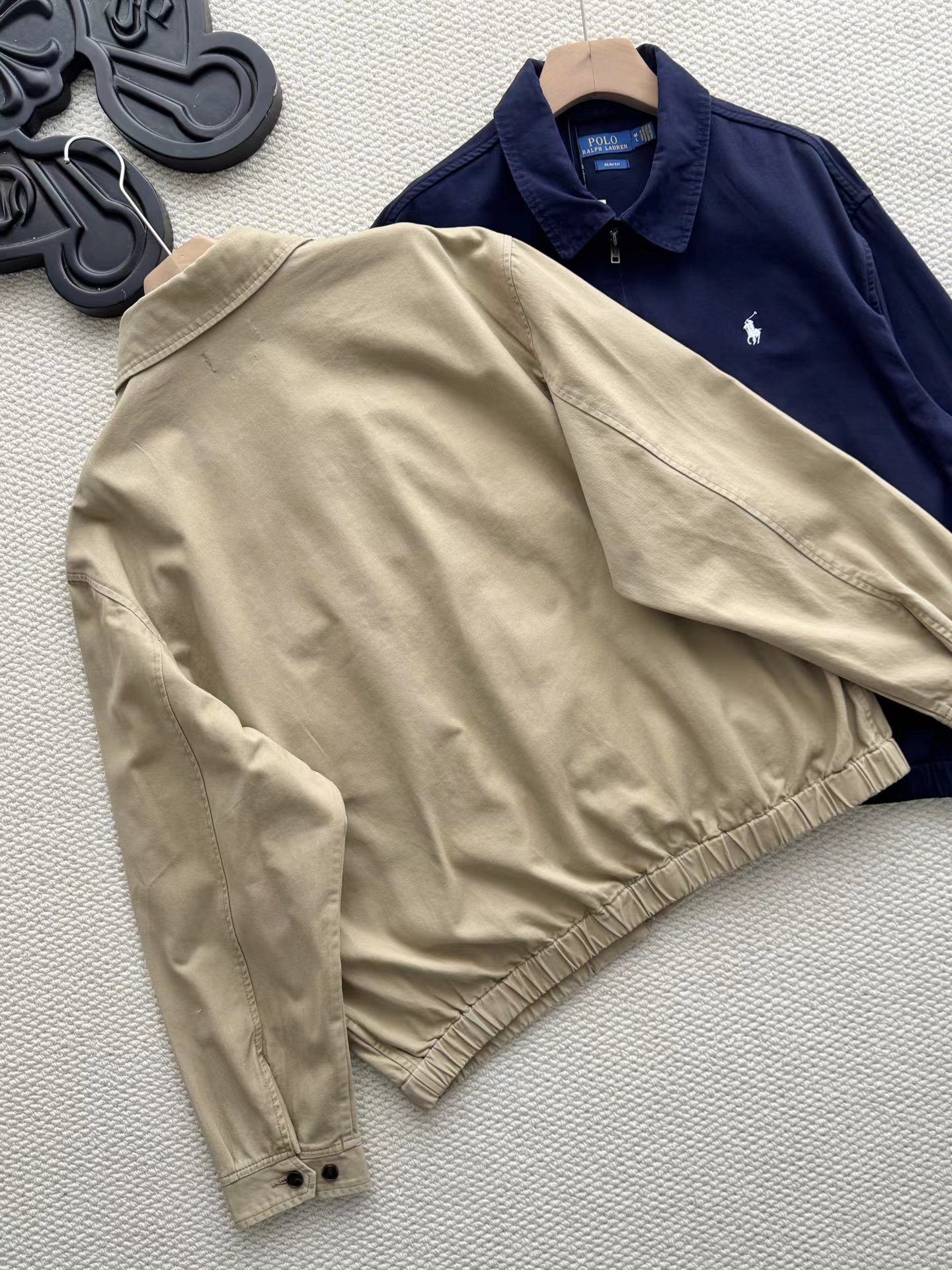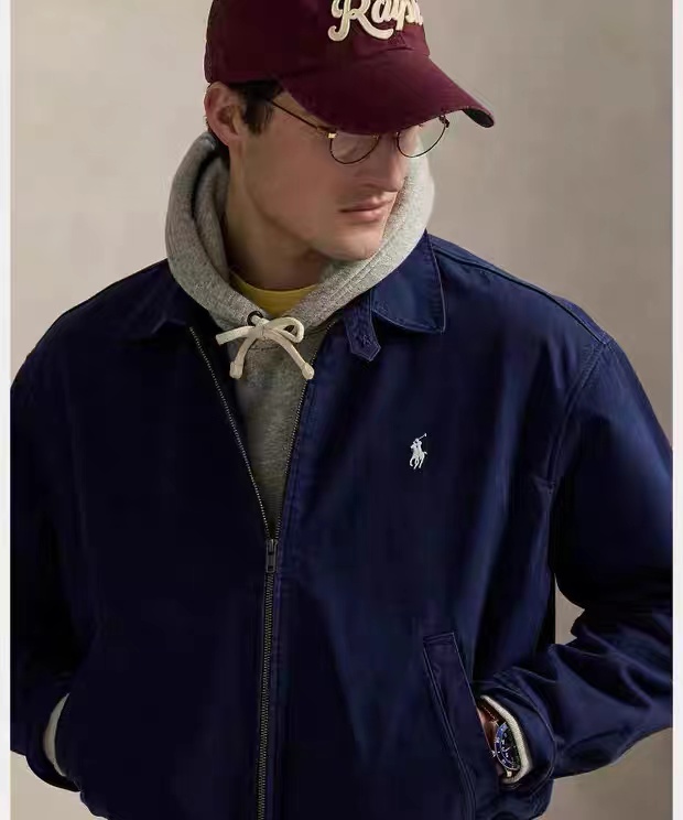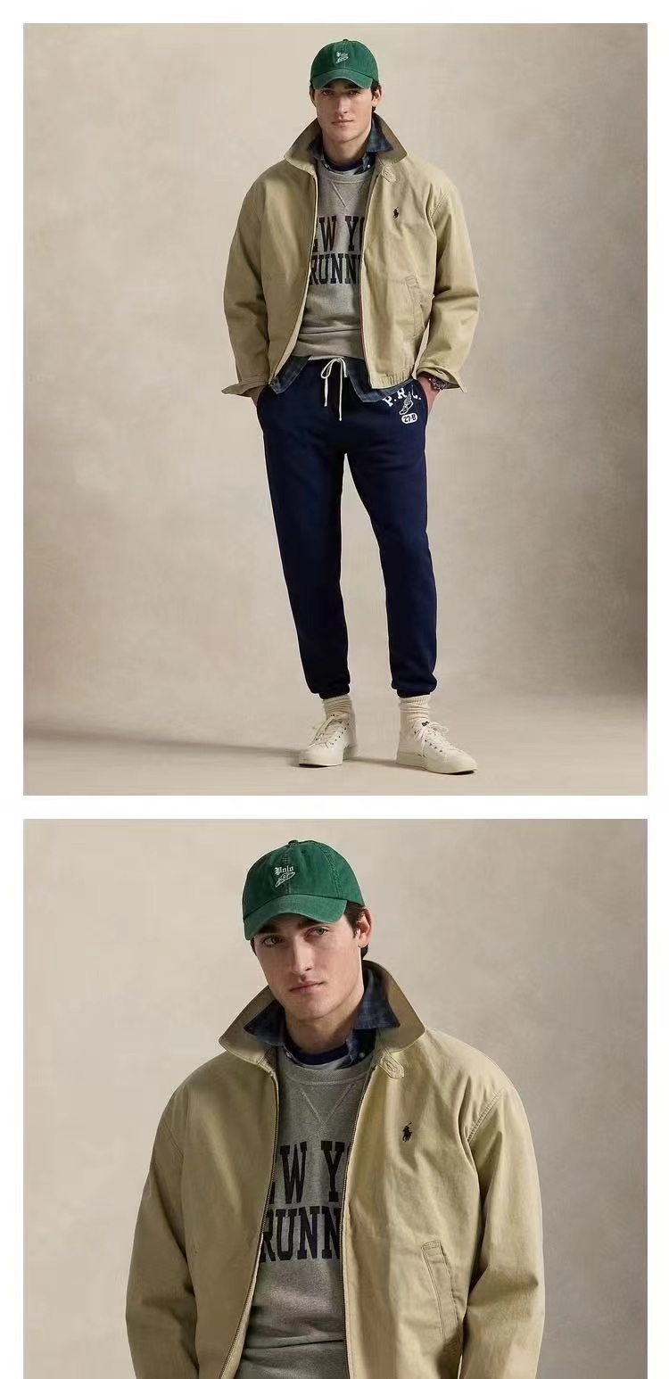 美式复古翻领+全拉链开合+下摆松紧收口设计,利落短款剪裁优化身材比例,自带随性慵懒的美式腔调,无论是搭配牛仔裤还是休闲裤,都能轻松营造复古精英感。 色彩选择:藏蓝与卡其双色可选,藏蓝沉稳大气,自带老钱风范;卡其温柔百搭,是春秋季的氛围感担当,两色均为永不过时的jing典色系。 细节质感:胸口小巧的马球运动员刺绣Logo;两侧对称插袋设计,兼顾实用性与视觉平衡;面料经过水洗做旧处理,自带柔和光泽与复古做旧感,越穿越有味道。功能性:舒适耐穿,适配日常。面料质感:采用重磅斜纹棉布/水洗棉面料,厚实挺括却不僵硬,既有良好的防风保暖性,又保证了穿着的柔软舒适,春秋季单穿刚刚好,冬季也可作为内搭叠穿。实用细节:翻领设计可立可翻,灵活应对天气变化;全拉链顺滑易拉,穿脱便捷;袖口与下摆的松紧收口设计,有效防止冷风倒灌,同时让版型更利落不拖沓。耐穿易打理:面料耐磨抗造,不易起球变形,日常机洗即可,是一件可以穿很多年的“传家宝”级单品。它是真正的美式复古万能外套:日常通勤:搭配Polo衫、卡其裤与乐福鞋,秒变美式学院风精英,职场与休闲场合无缝切换。复古出街:搭配复古T恤、直筒牛仔裤与板鞋,随性慵懒,氛围感拉满。叠穿造型:内搭高领毛衣或卫衣,外搭大衣/风衣,打造层次丰富的秋冬造型。
