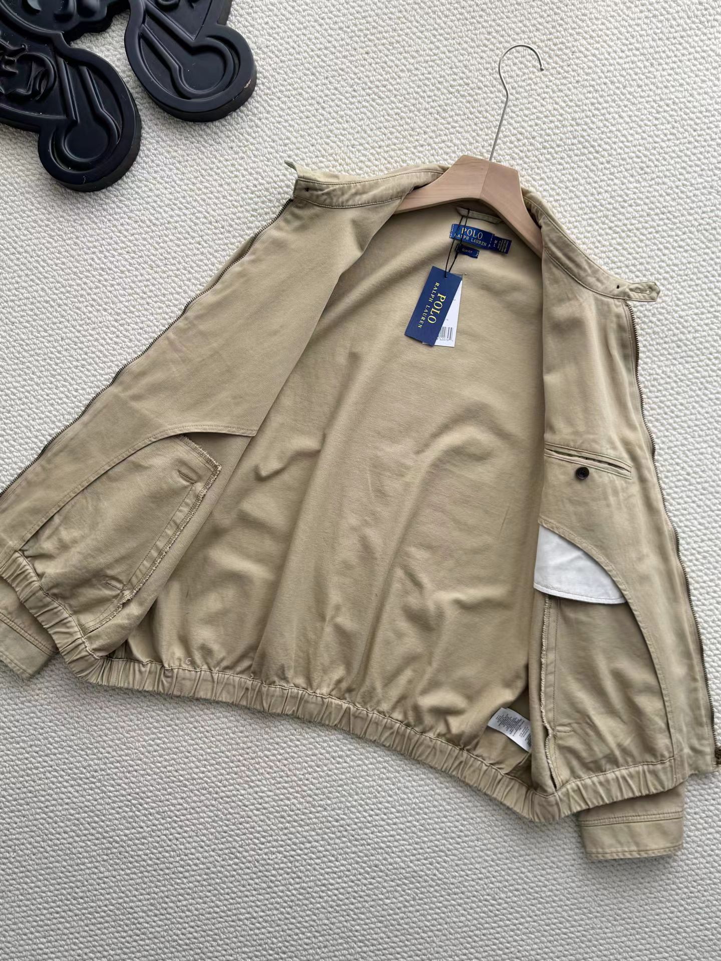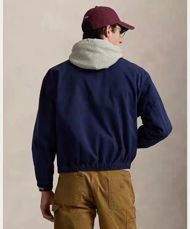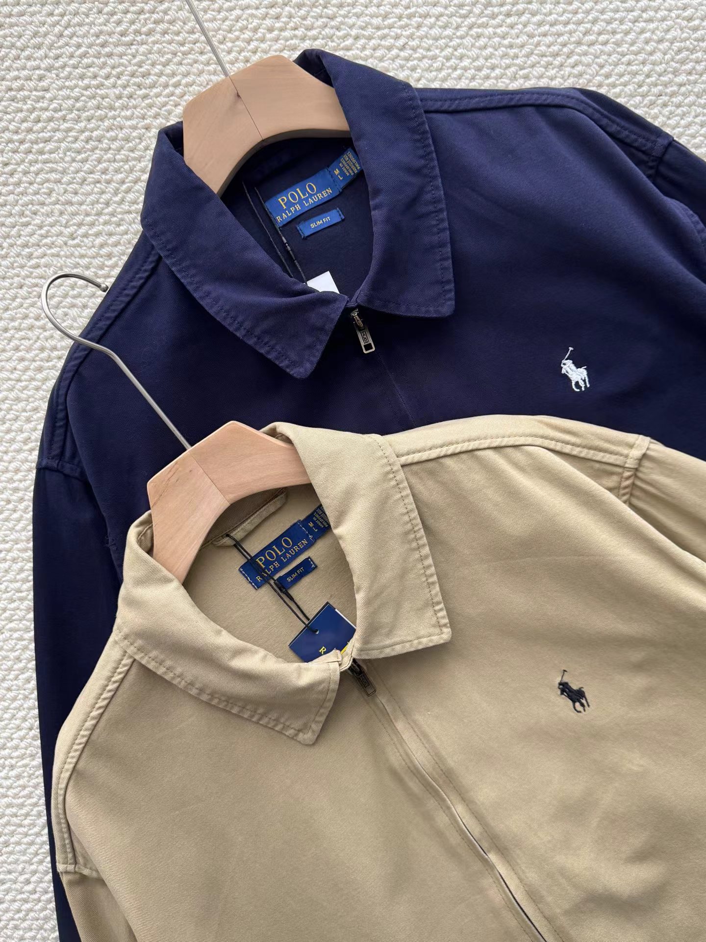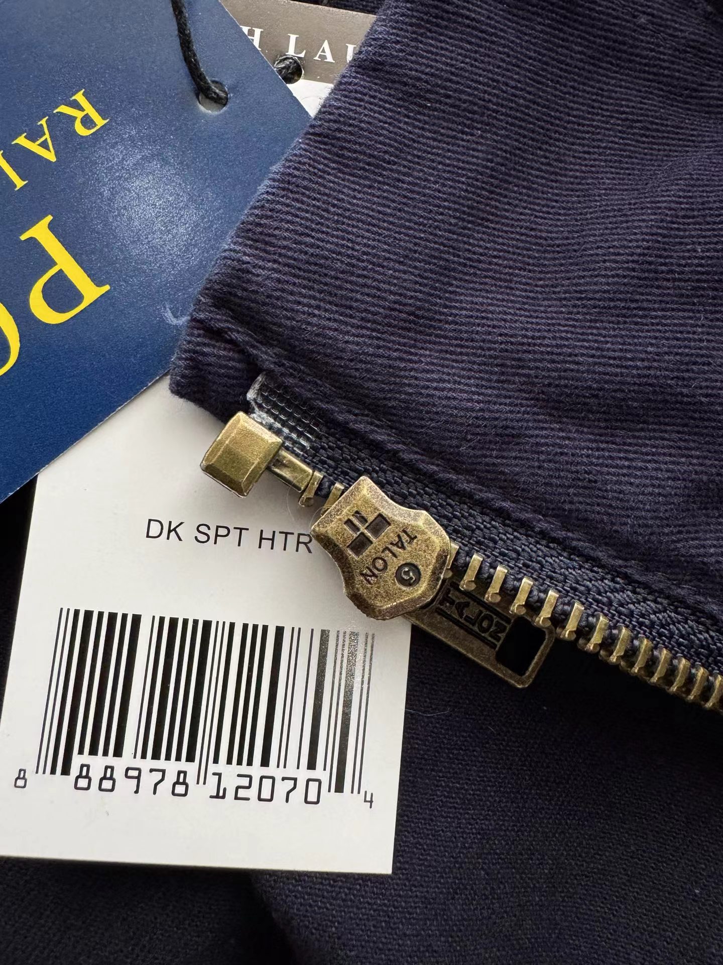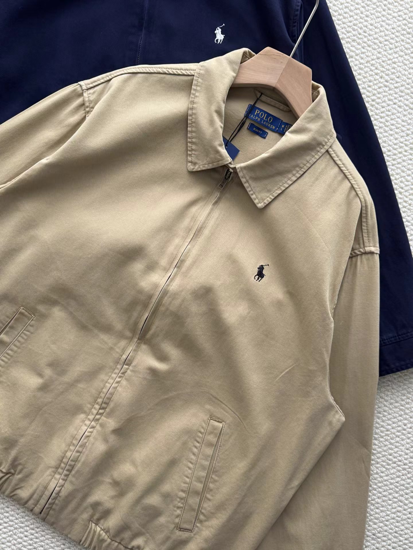 美式复古翻领+全拉链开合+下摆松紧收口设计,利落短款剪裁优化身材比例,自带随性慵懒的美式腔调,无论是搭配牛仔裤还是休闲裤,都能轻松营造复古精英感。 色彩选择:藏蓝与卡其双色可选,藏蓝沉稳大气,自带老钱风范;卡其温柔百搭,是春秋季的氛围感担当,两色均为永不过时的jing典色系。 细节质感:胸口小巧的马球运动员刺绣Logo;两侧对称插袋设计,兼顾实用性与视觉平衡;面料经过水洗做旧处理,自带柔和光泽与复古做旧感,越穿越有味道。功能性:舒适耐穿,适配日常。面料质感:采用重磅斜纹棉布/水洗棉面料,厚实挺括却不僵硬,既有良好的防风保暖性,又保证了穿着的柔软舒适,春秋季单穿刚刚好,冬季也可作为内搭叠穿。实用细节:翻领设计可立可翻,灵活应对天气变化;全拉链顺滑易拉,穿脱便捷;袖口与下摆的松紧收口设计,有效防止冷风倒灌,同时让版型更利落不拖沓。耐穿易打理:面料耐磨抗造,不易起球变形,日常机洗即可,是一件可以穿很多年的“传家宝”级单品。它是真正的美式复古万能外套:日常通勤:搭配Polo衫、卡其裤与乐福鞋,秒变美式学院风精英,职场与休闲场合无缝切换。复古出街:搭配复古T恤、直筒牛仔裤与板鞋,随性慵懒,氛围感拉满。叠穿造型:内搭高领毛衣或卫衣,外搭大衣/风衣,打造层次丰富的秋冬造型。