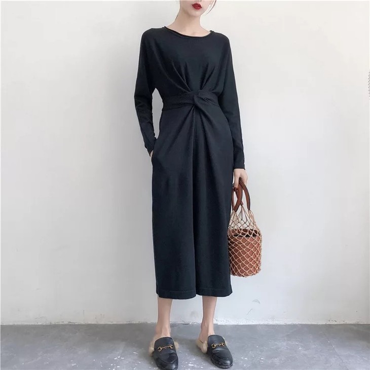 【服饰鞋包】桔梗裙秋小众毛衣裙女气质长裙复古收腰针织秋冬法式连衣裙秋