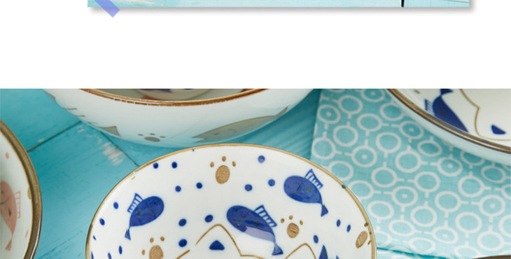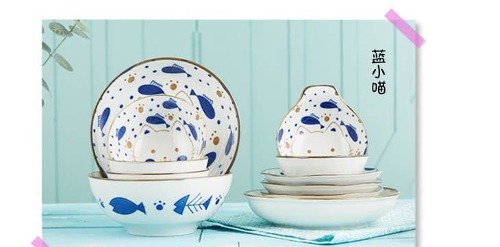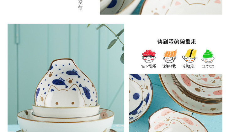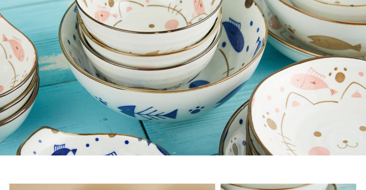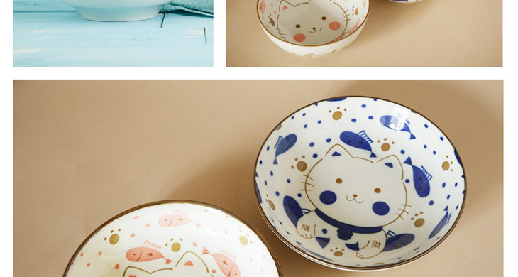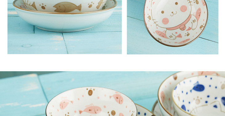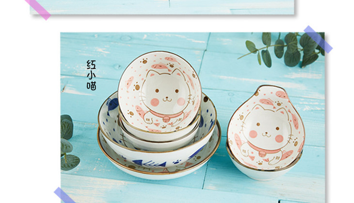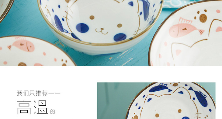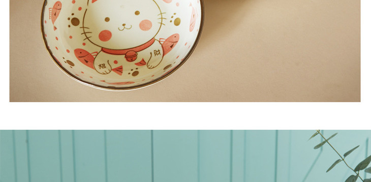 【居家日用】。原是家居 日式陶瓷手绘餐具 小馋猫系列 6.5寸大汤碗 家用
