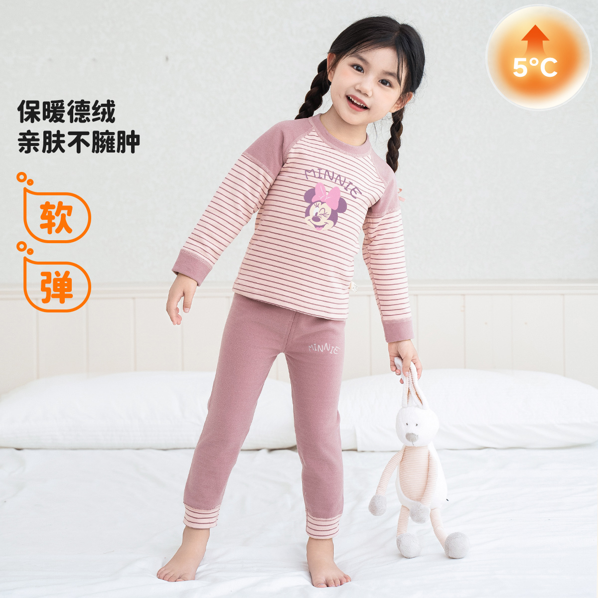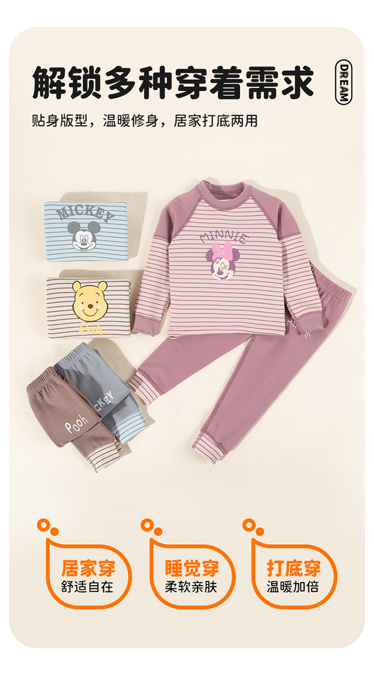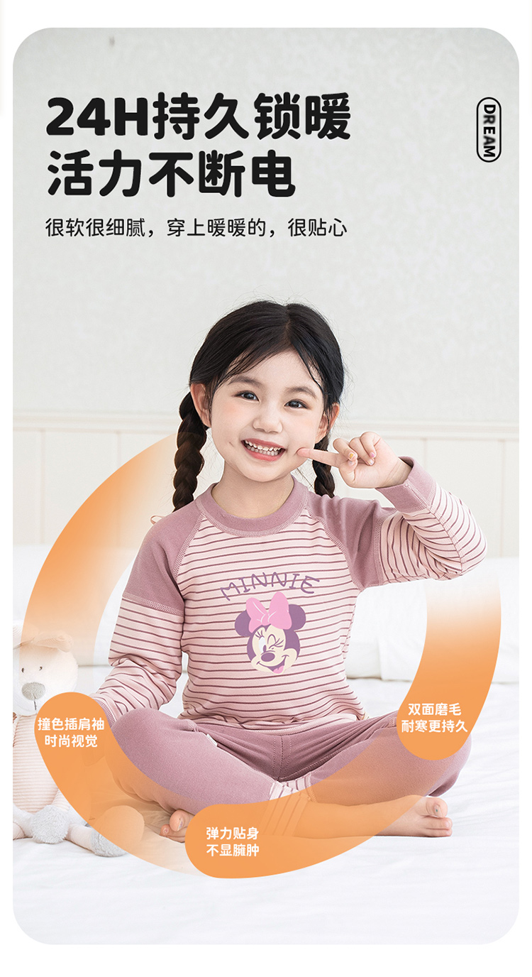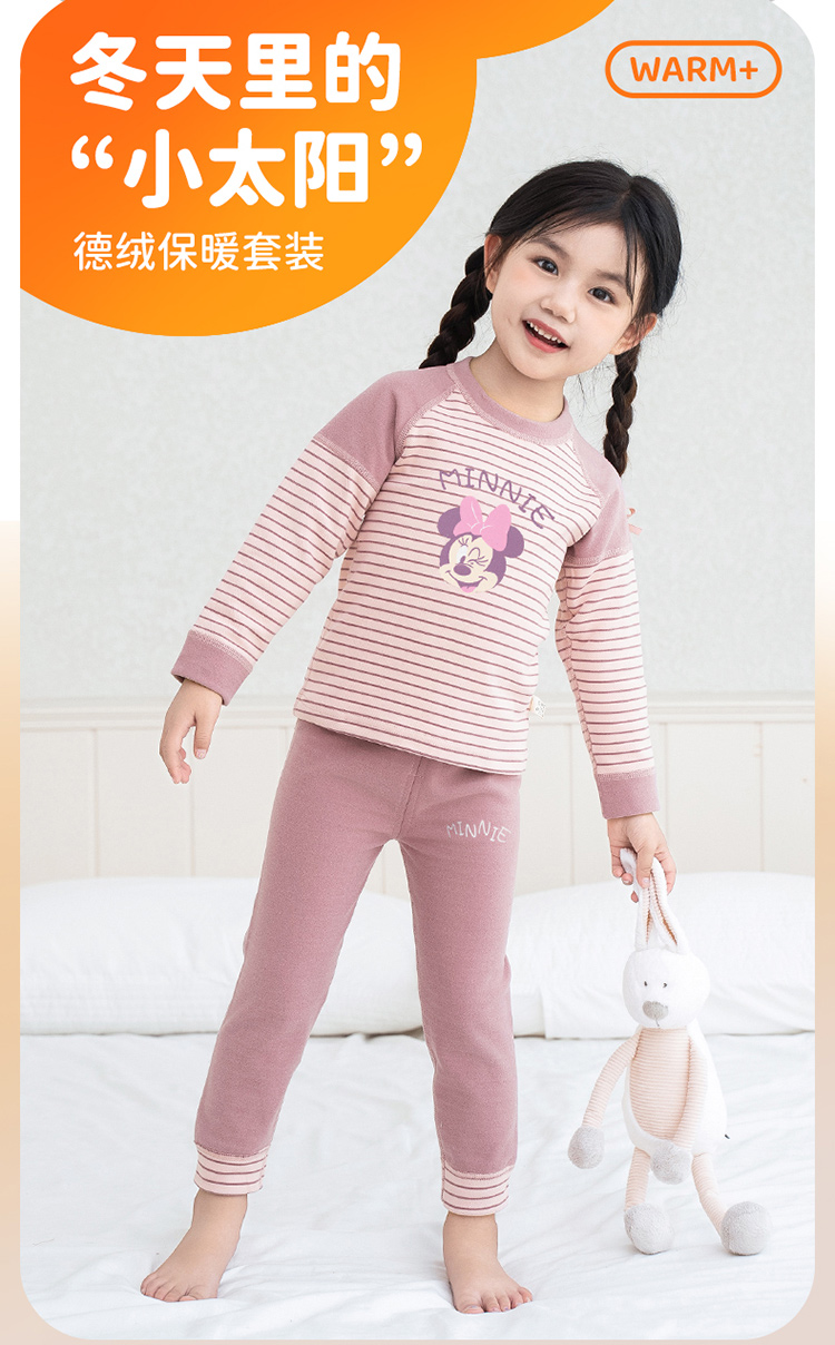 迪士尼童装女童德绒保暖家居服套装秋冬季米妮可爱秋衣秋裤两件套ZD3DT047