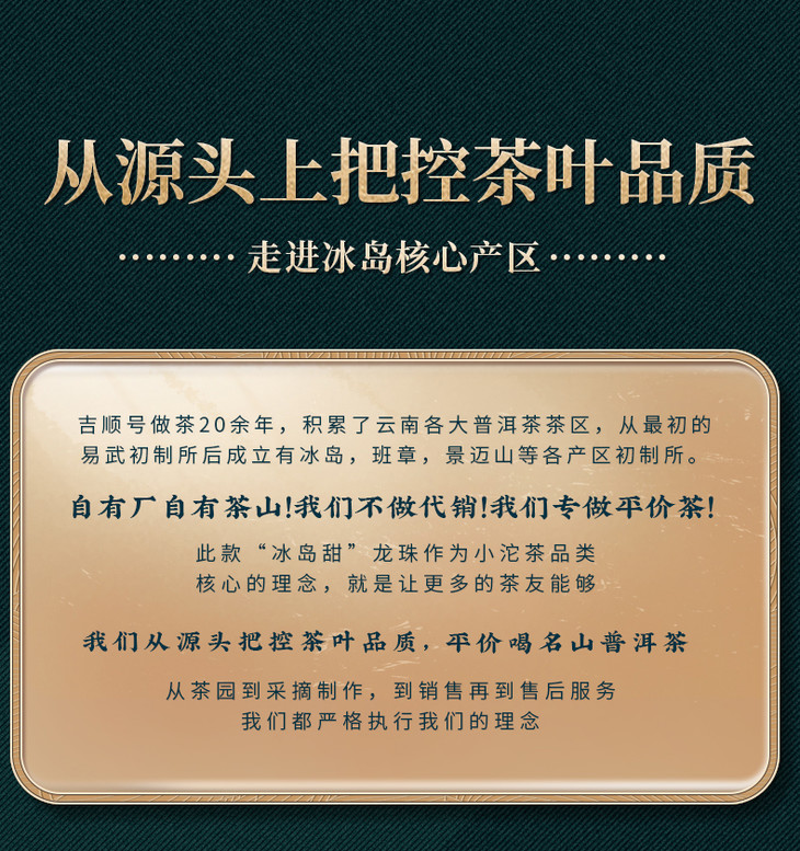- 云南吉顺号茶业,专业云南普洱茶基地生产销售商。自有基地茶厂及运营仓储物流团队。