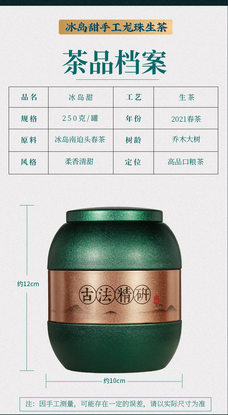 吉顺号冰岛头春古树普洱龙珠茶 生茶 小沱茶 250克/罐 免费试喝50g!