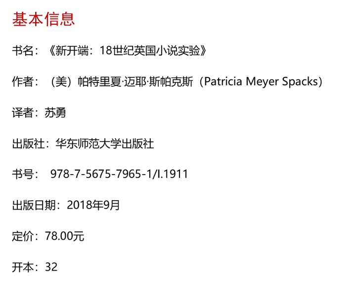 新开端 18世纪英国小说实验 十八世纪英国小说发展史 六点图书