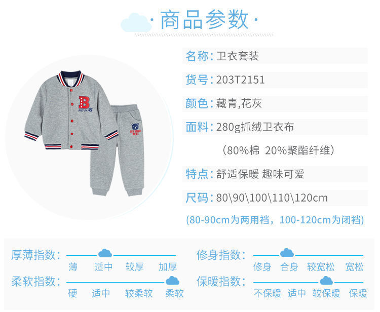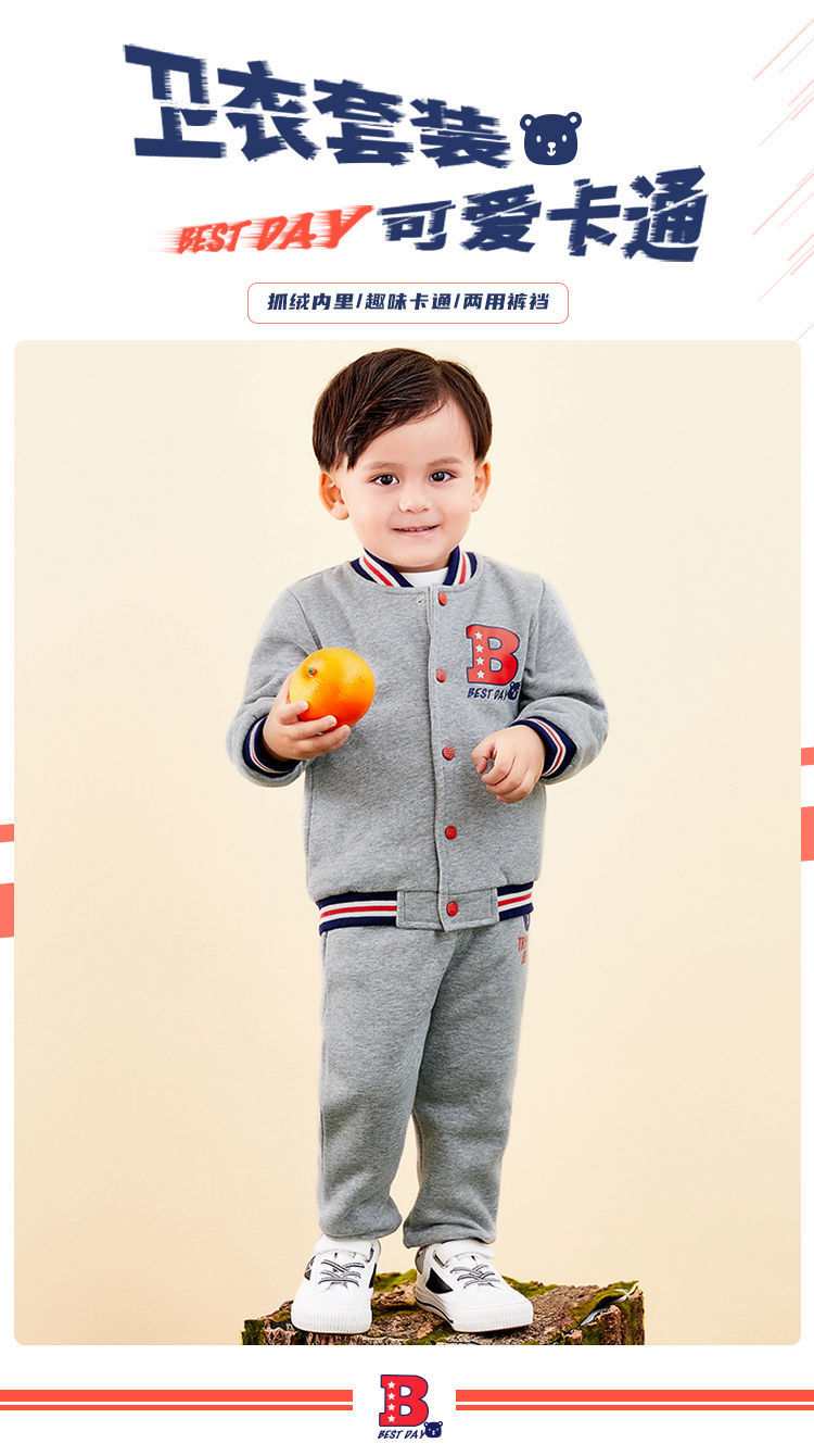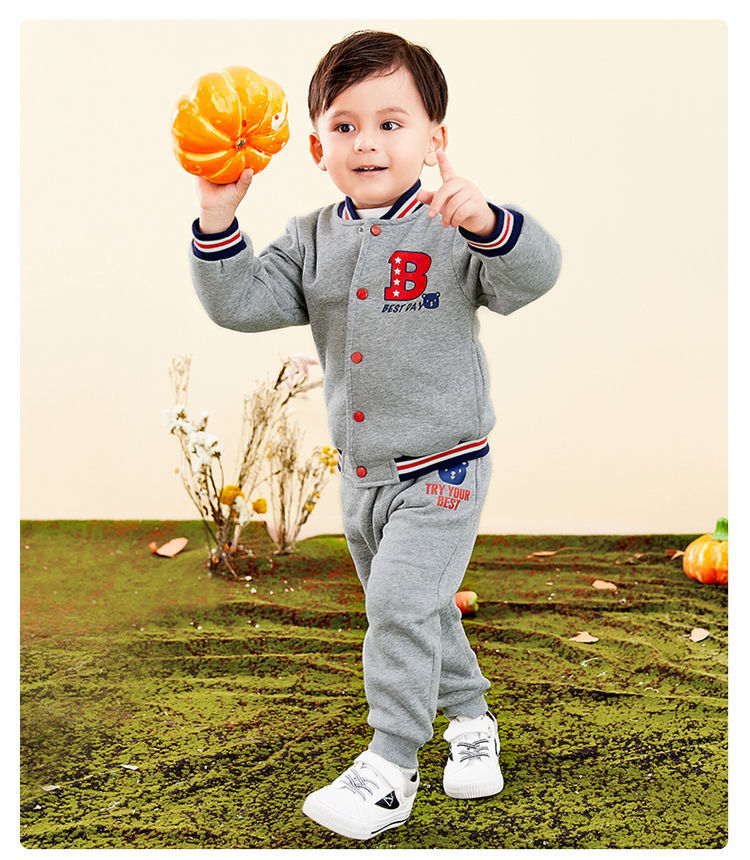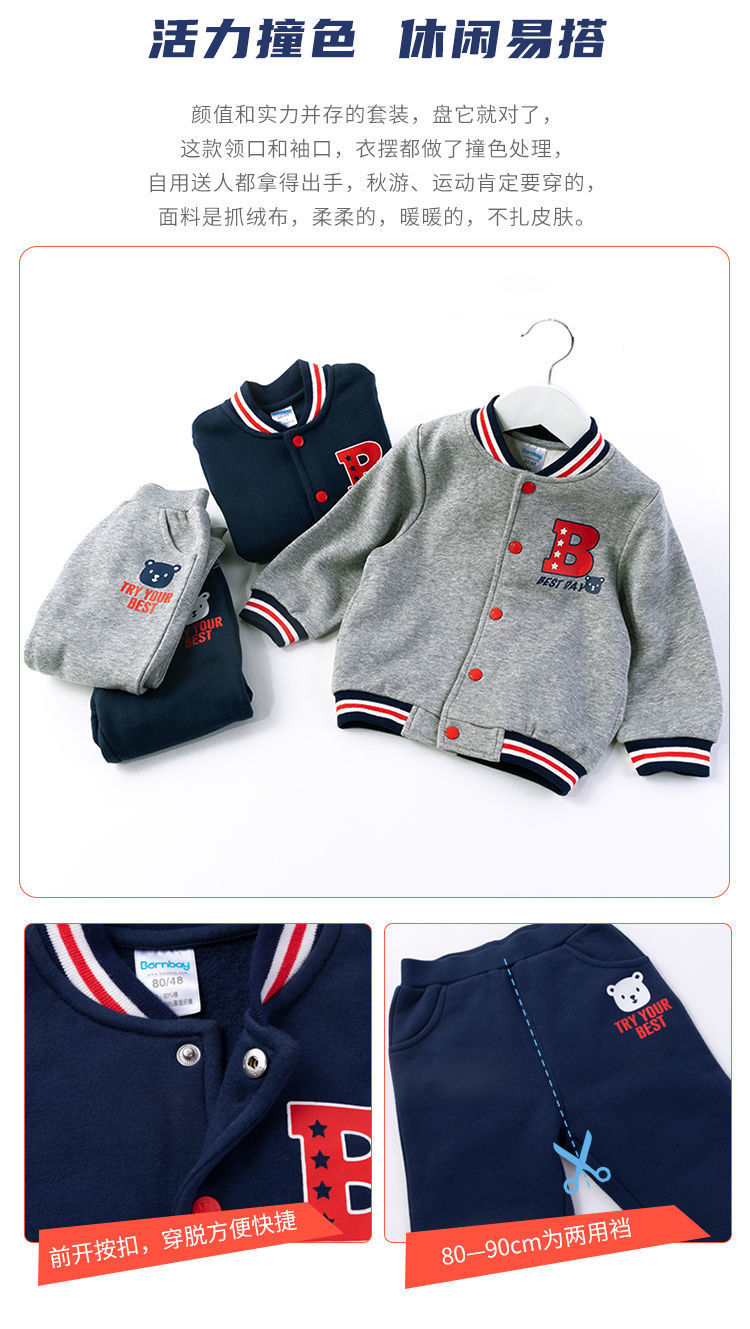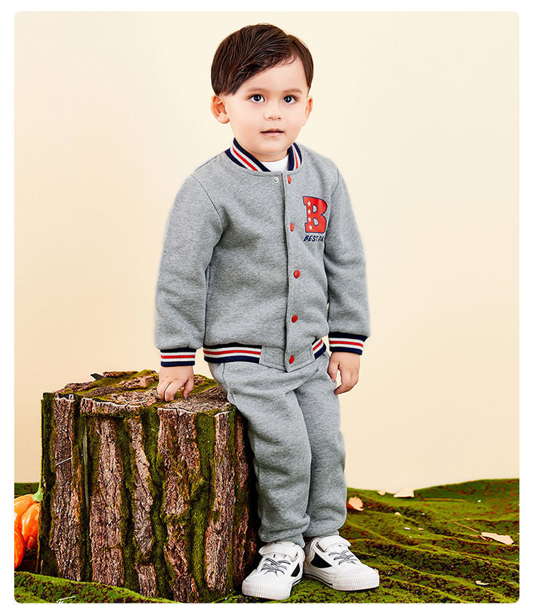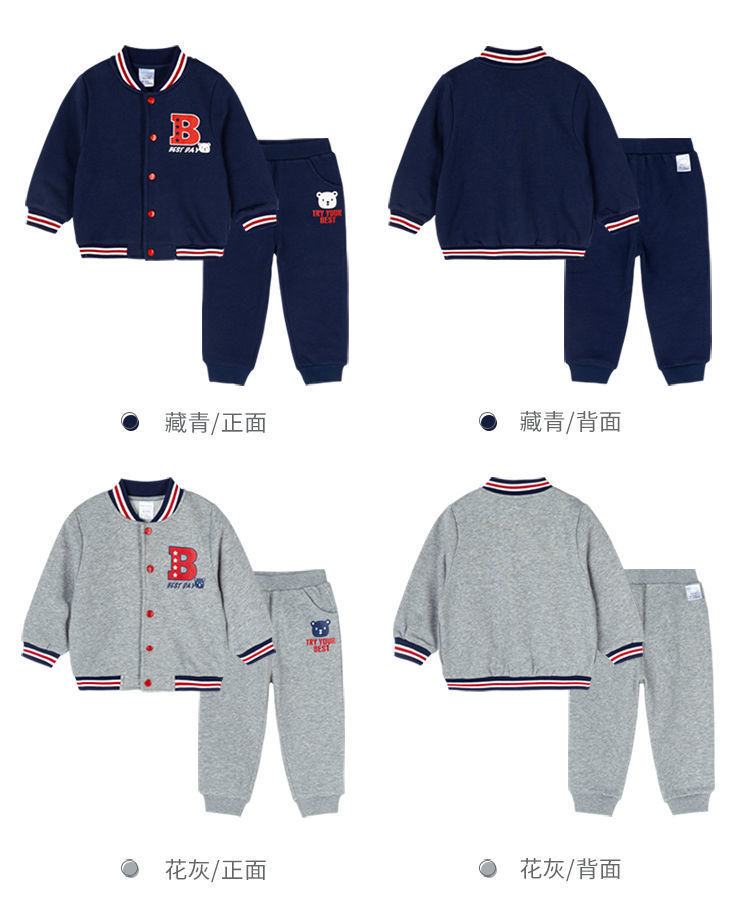 贝贝怡秋冬装男孩儿童休闲运动韩版棒球服长袖外套套装213T2339