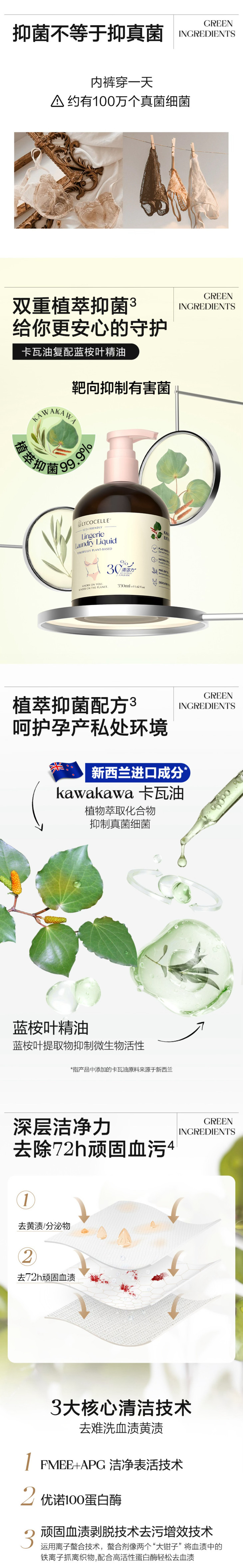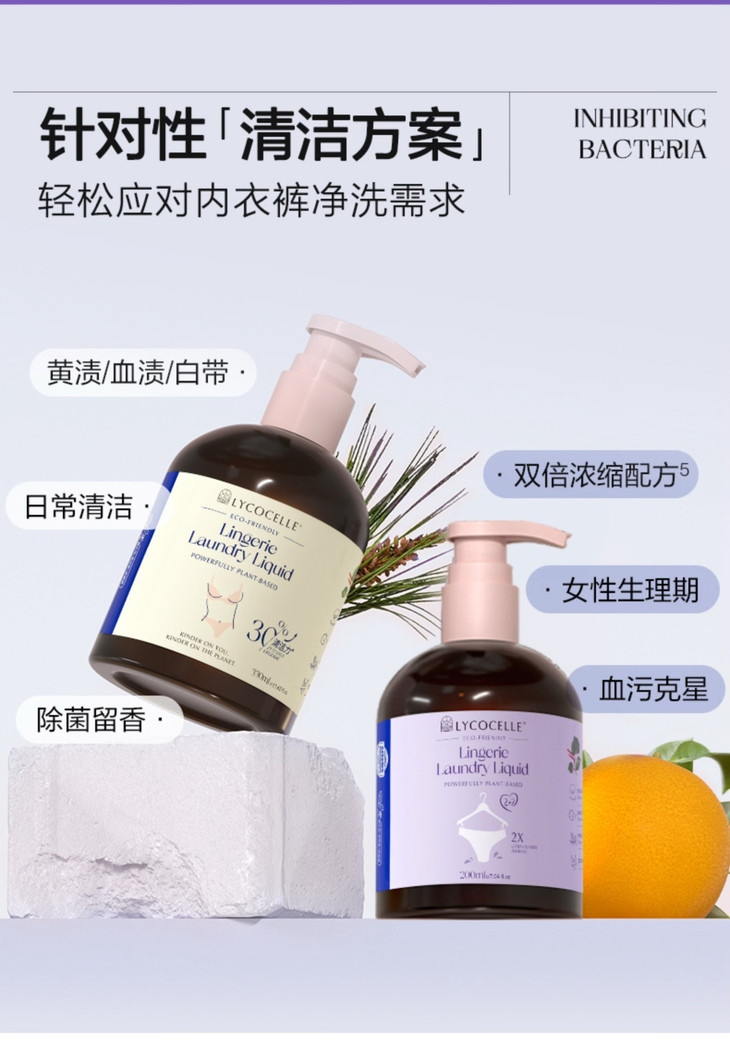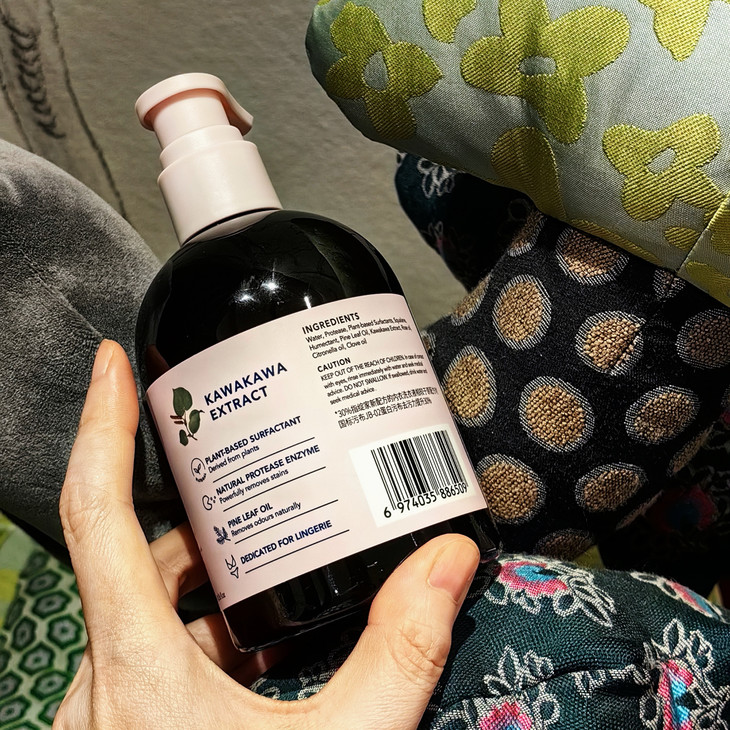 绽家内衣洗衣液,添加kawakava卡瓦油和蓝桉叶精油双重植物精萃,抑菌的同时还能抑制微生物活性,同时结合了3大核心清洁技术,FMBE+APG洁净表活技术、优诺100蛋白酶技术及顽固血渍剥脱技术,去污增效,能轻松将污渍血渍和细菌清除干净。同时,绽家内衣洗衣液摒弃了传统化工配方,转而采用植物精粹基底,不仅减少了化学物质对衣物的损伤,更大大降低了对肌肤的刺激。弱酸性的温和配方,即便是敏感肌也能安心使用。而浓缩的设计,更是让每一次洗涤都变得高效而环保,一泵即可清洗三件内衣裤,既省量又省心!