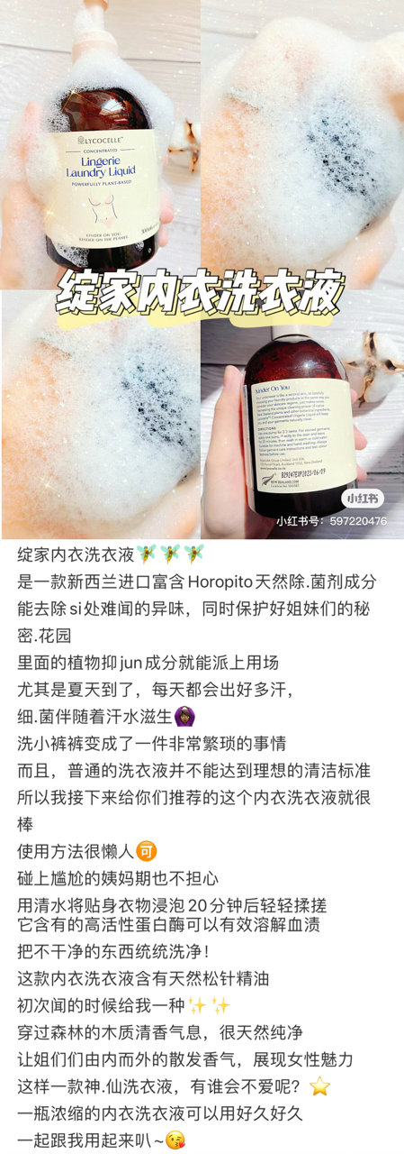 [屁侠推荐]绽家内衣洗衣液 新西兰洗护 内衣内裤专用洗衣液 去血渍除菌小能手·衣物持久留香