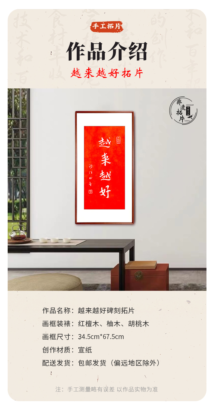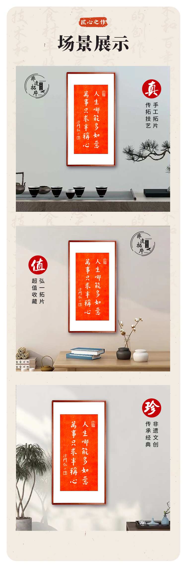 非遗传承 朱砂拓印 弘一法师书法拓片作品