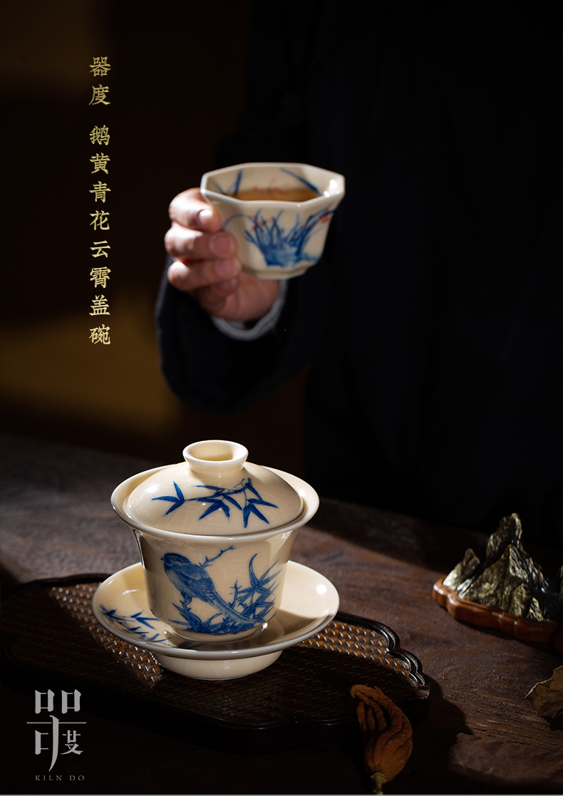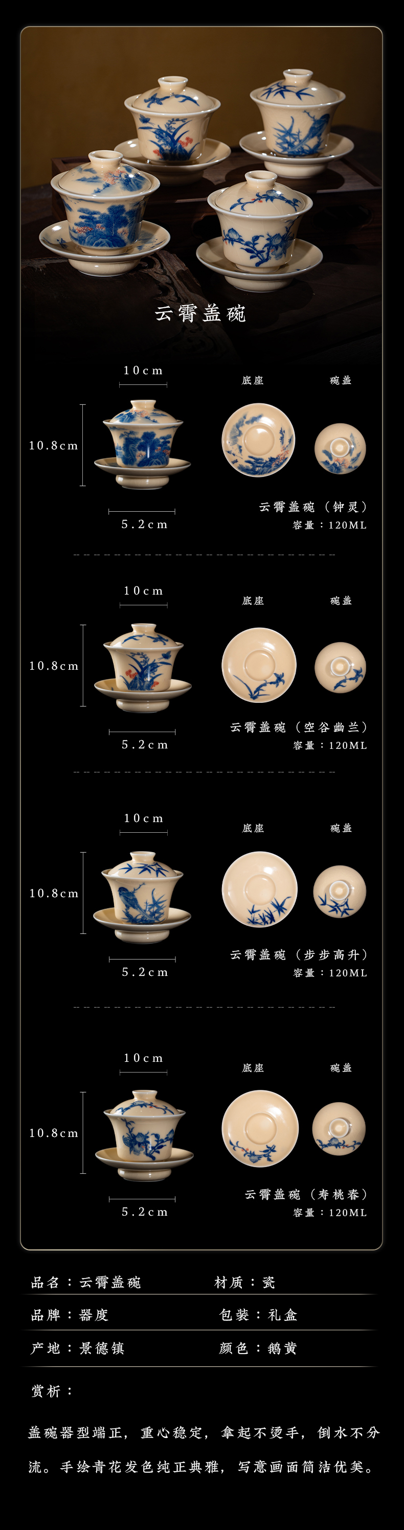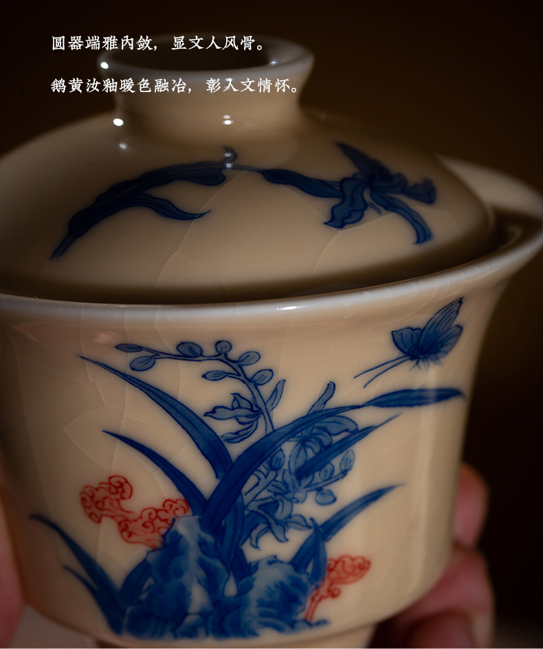 问鼎器度汝窑鹅黄青花云霄盖碗(钟灵)(寿桃春)(空谷幽兰)(步步高升)(缺货)