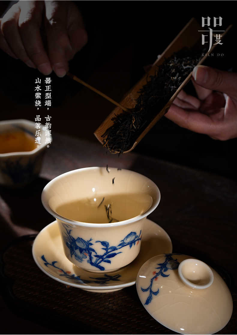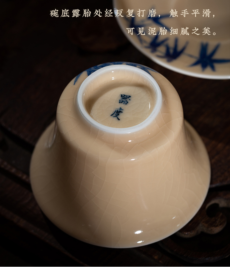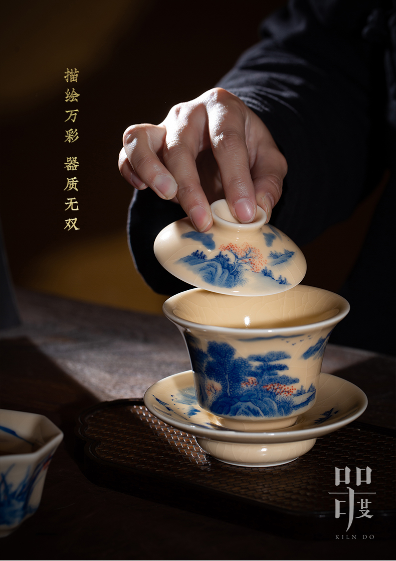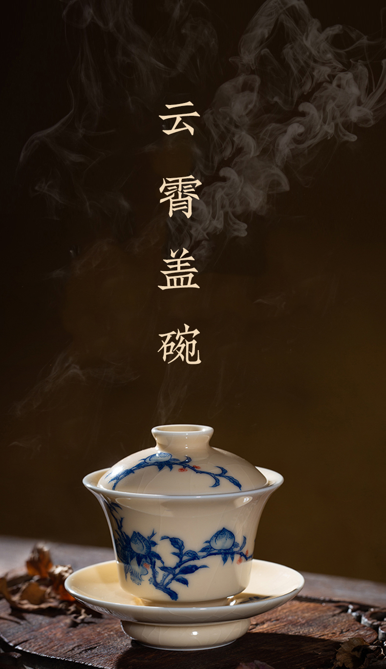 问鼎器度汝窑鹅黄青花云霄盖碗(钟灵)(寿桃春)(空谷幽兰)(步步高升)(缺货)