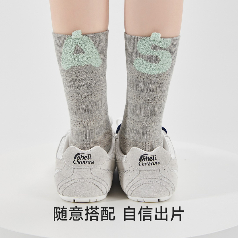 4双一组!2025早秋新款后跟毛绒字母无骨女袜棉袜 94%高含棉量 镂空网眼透气柔软亲肤