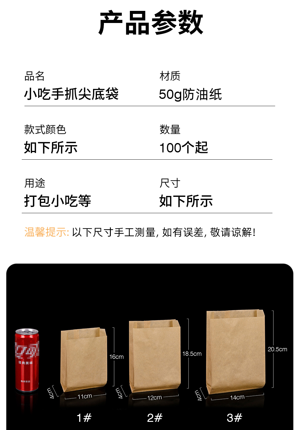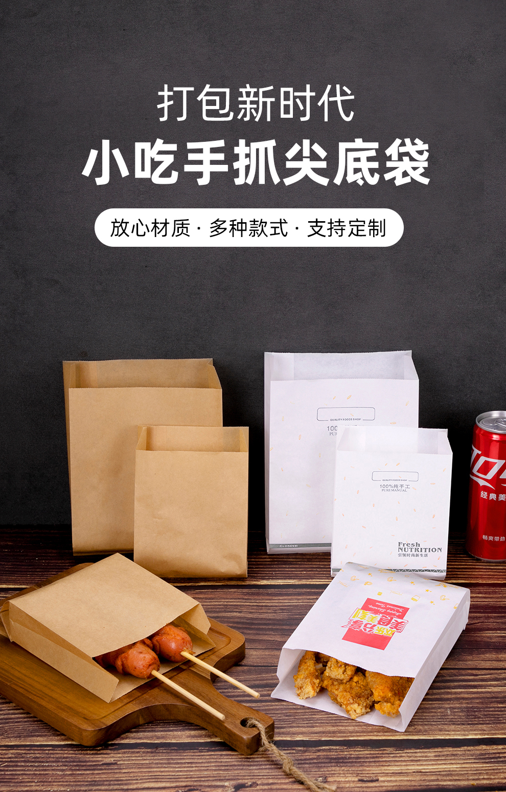 喇叭花一次性尖底袋纸袋鸡排薯条汉堡袋牛皮纸炸鸡袋小吃外卖打包