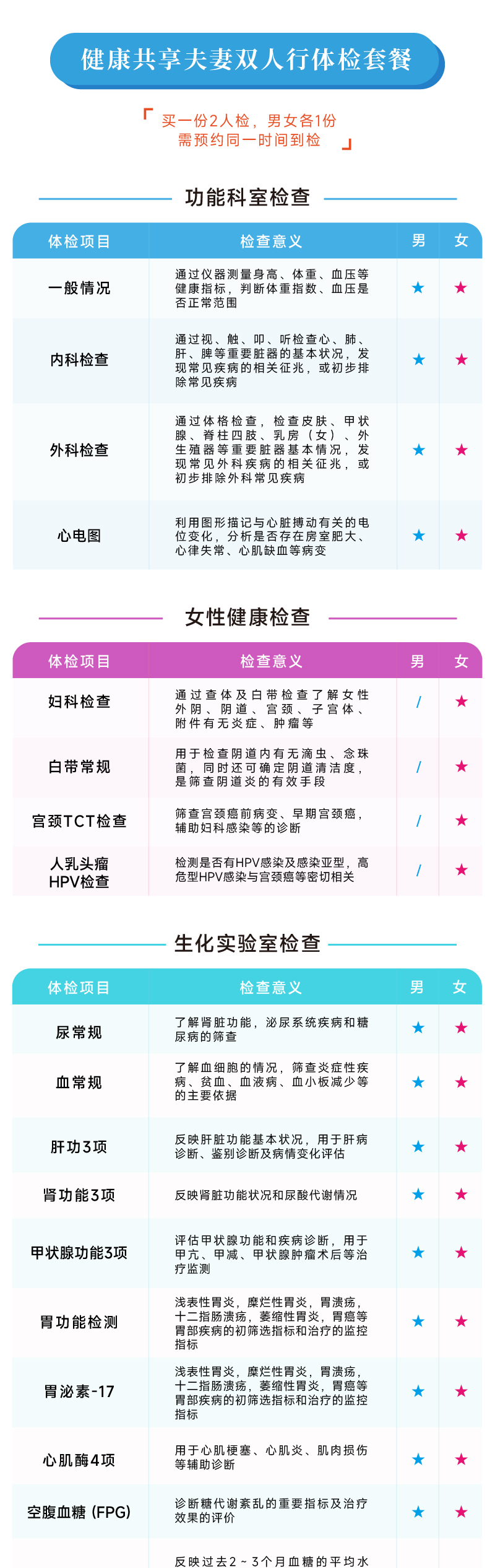 健康共享夫妻双人行体检套餐(男女各一份)(诸暨艾曼分院)