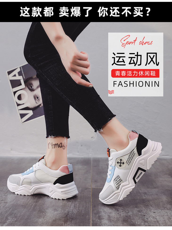 。【女鞋】.老爹鞋女秋季款韩版百搭透气学生增高运动休闲鞋女跑步鞋