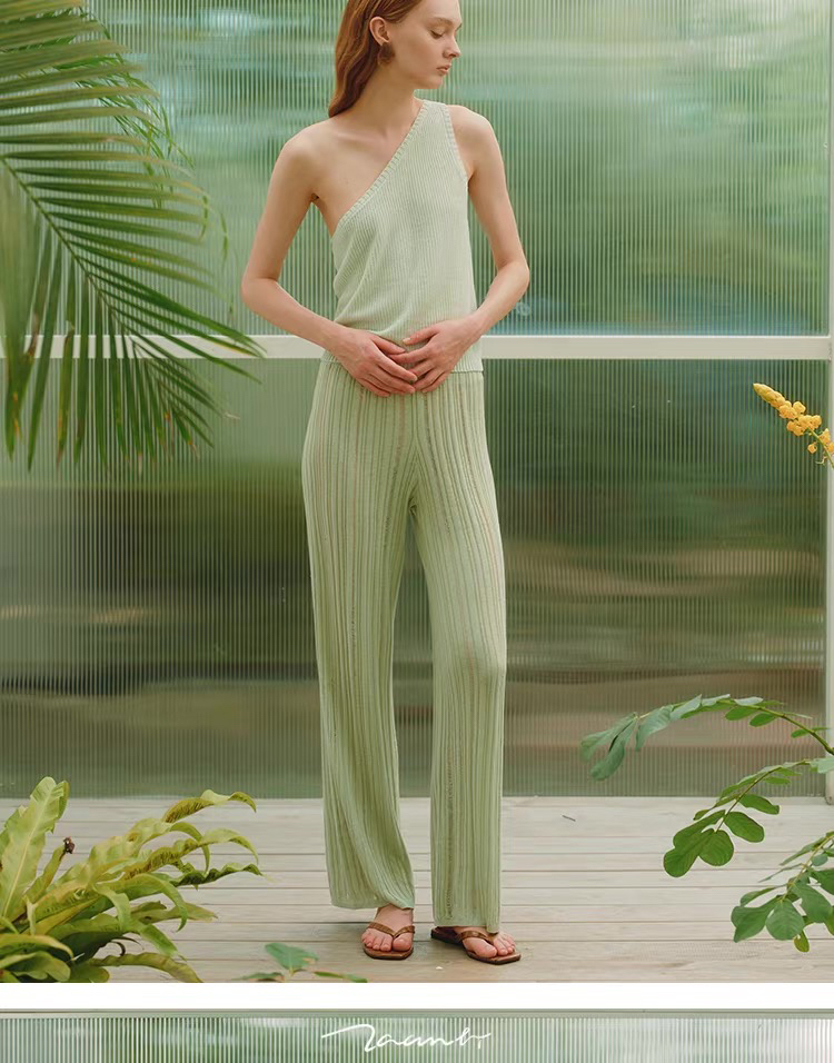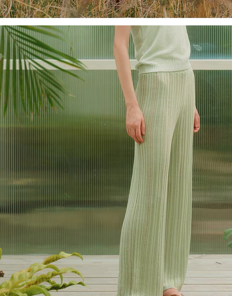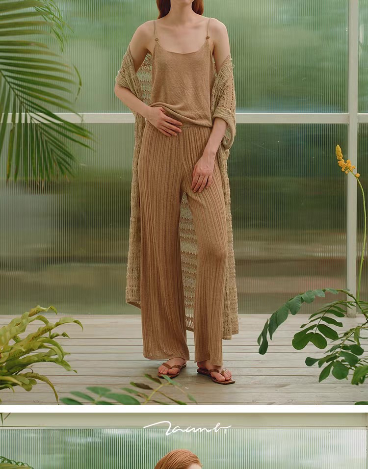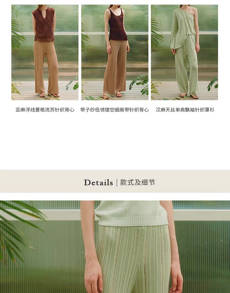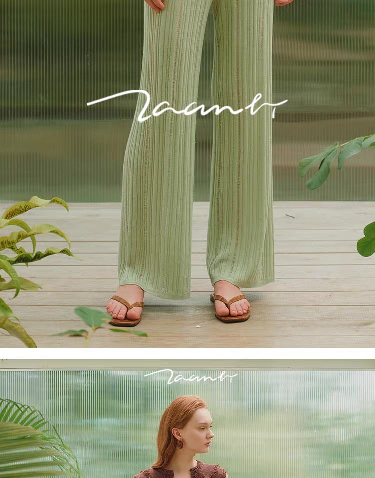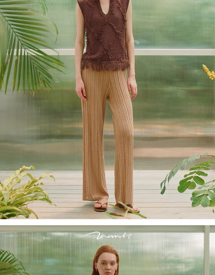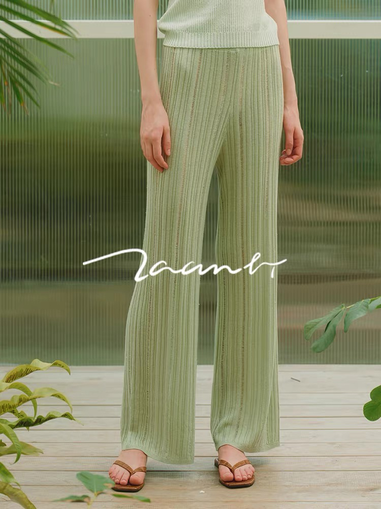 ZAANLI|ZNSS25029 汉麻天丝肌理针织长裤 [ 棕 / 绿 ]