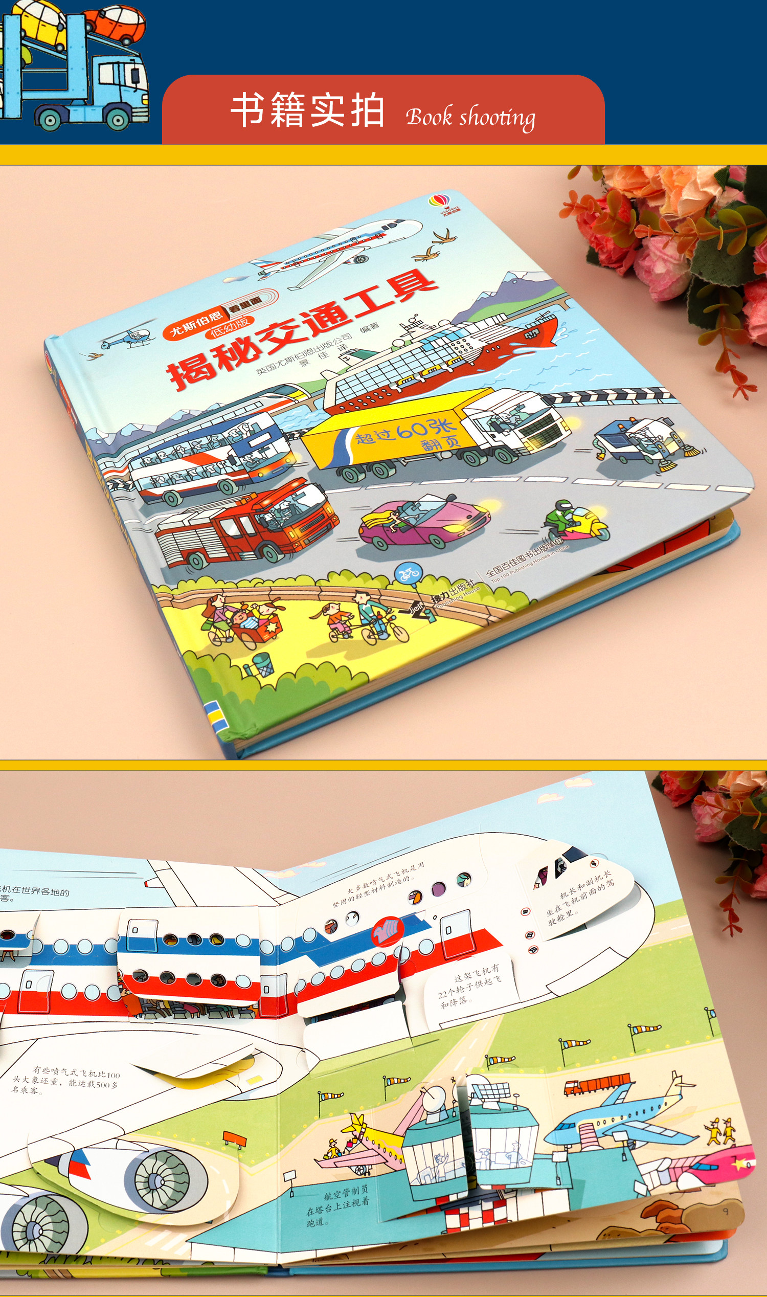 【精装硬壳】尤斯伯恩偷偷看里面低幼版揭秘交通工具系列儿童翻翻书 科普百科立体书3-6岁少儿幼儿启蒙认知早教书撕不烂车车工程车