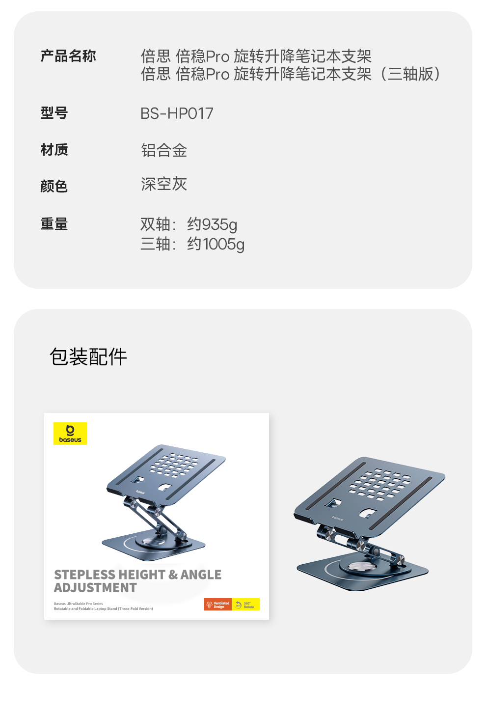 倍思 倍稳Pro 旋转升降笔记本支架