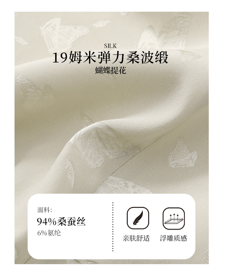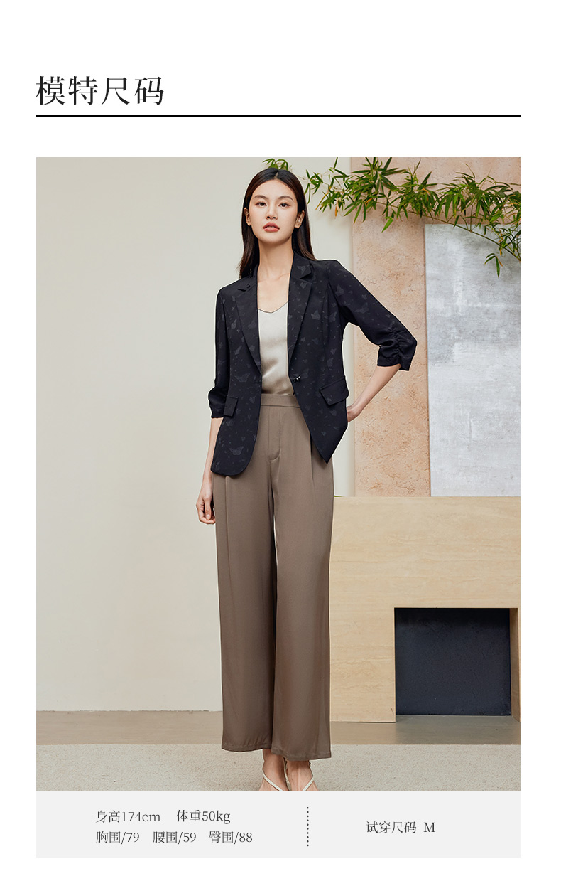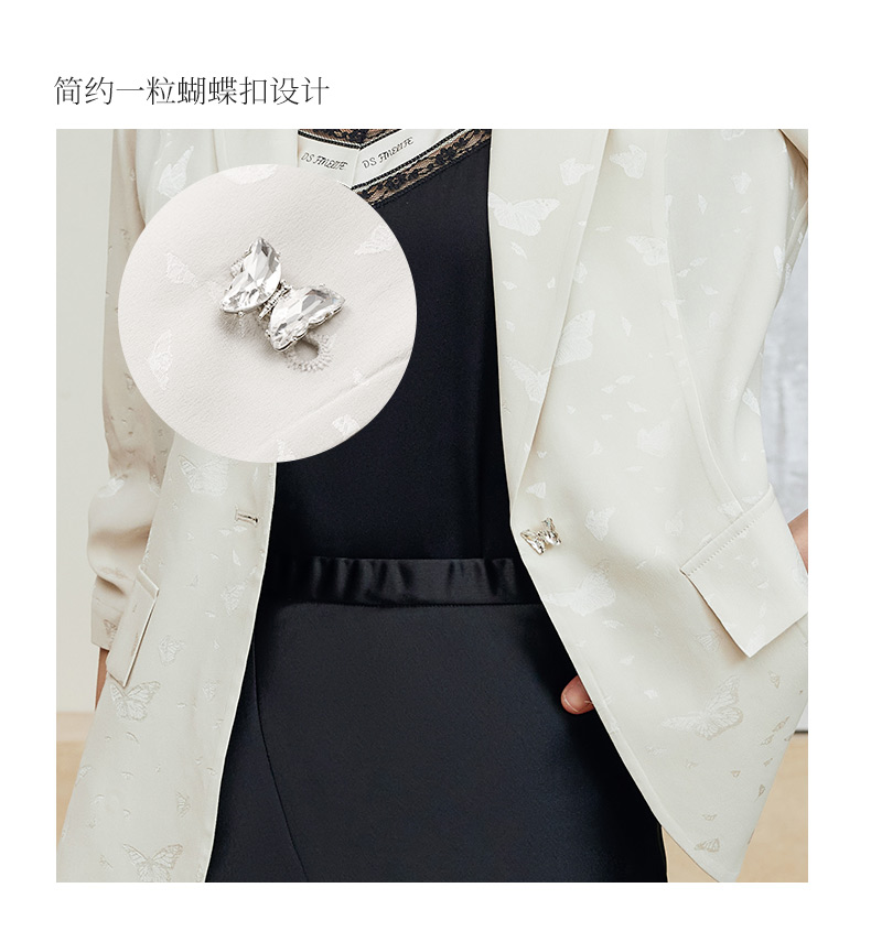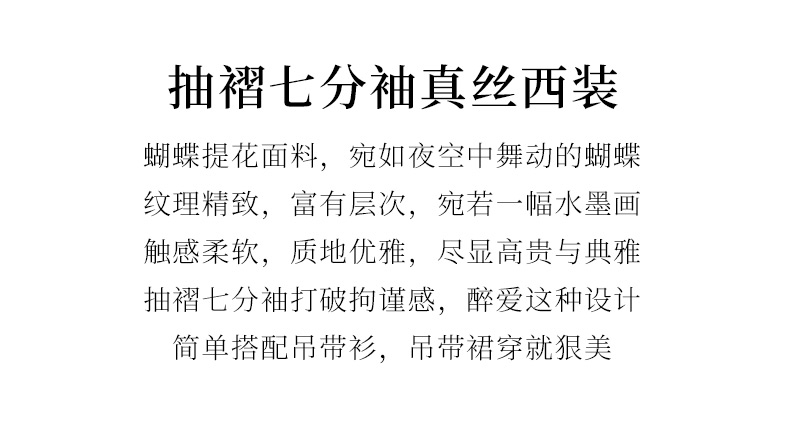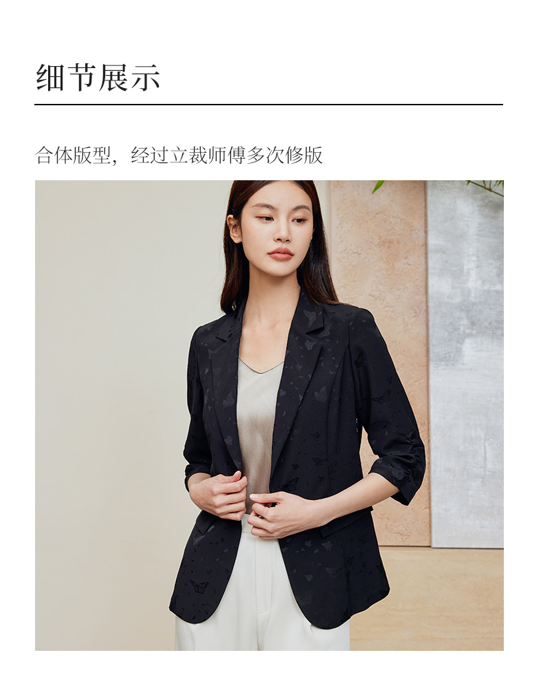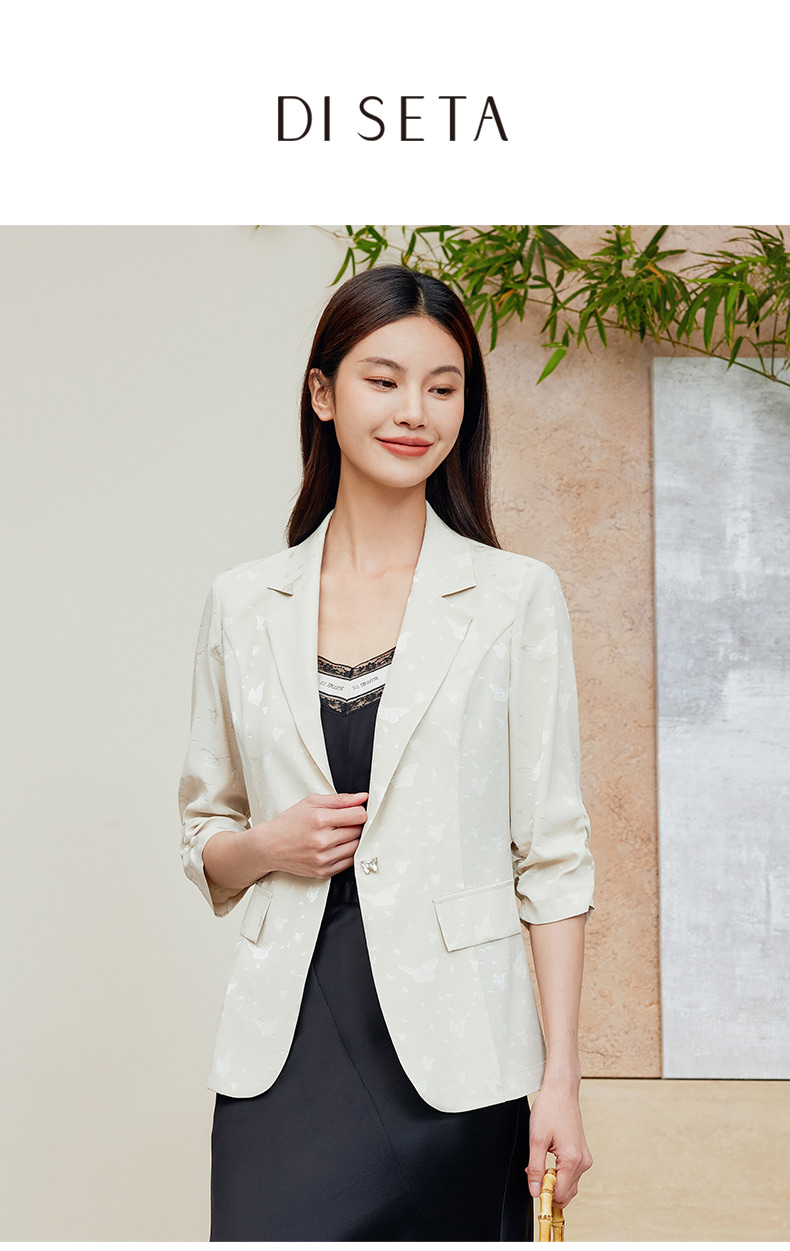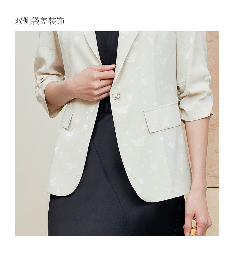 玳莎抽褶七分袖真丝西装女2024新款夏季桑蚕丝桑波缎蝴蝶提花外套 EB37201