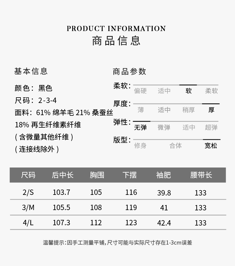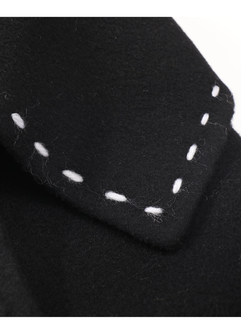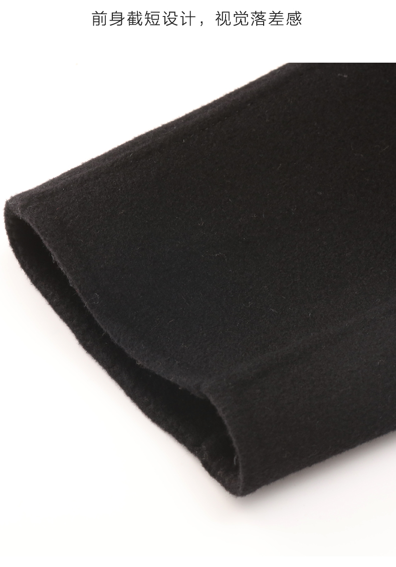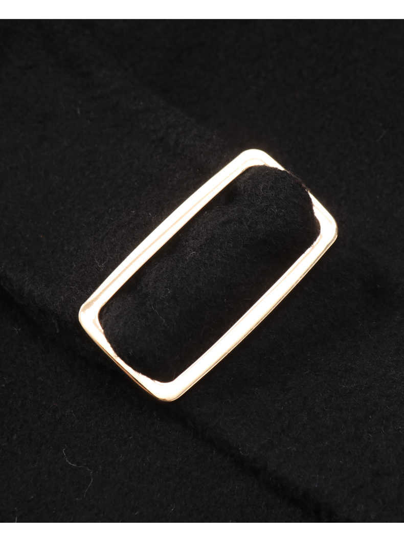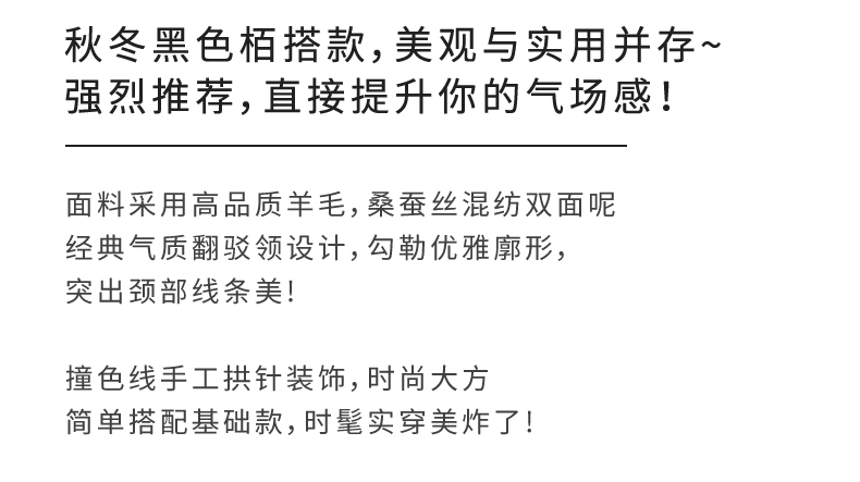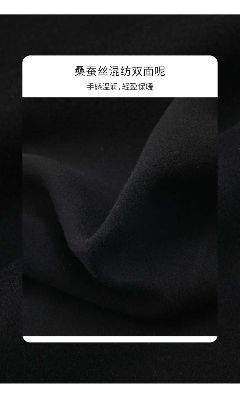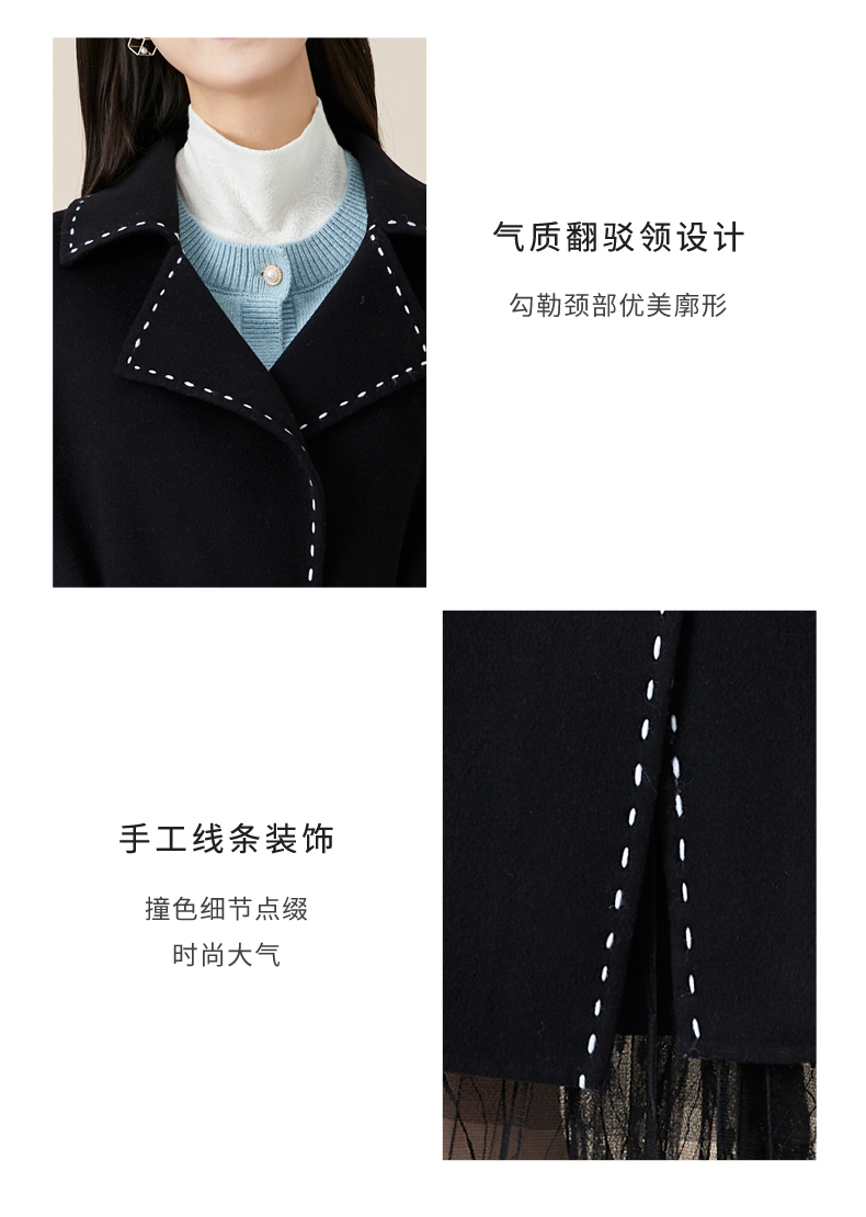 玳莎翻领双面呢大衣女新款冬季黑色收腰宽松中长款毛呢外套 BD39301