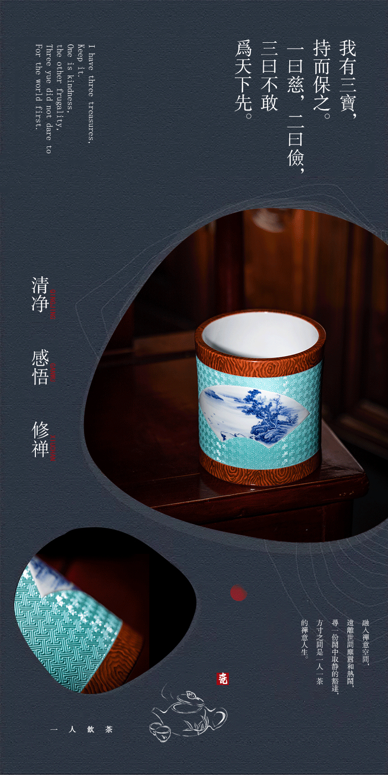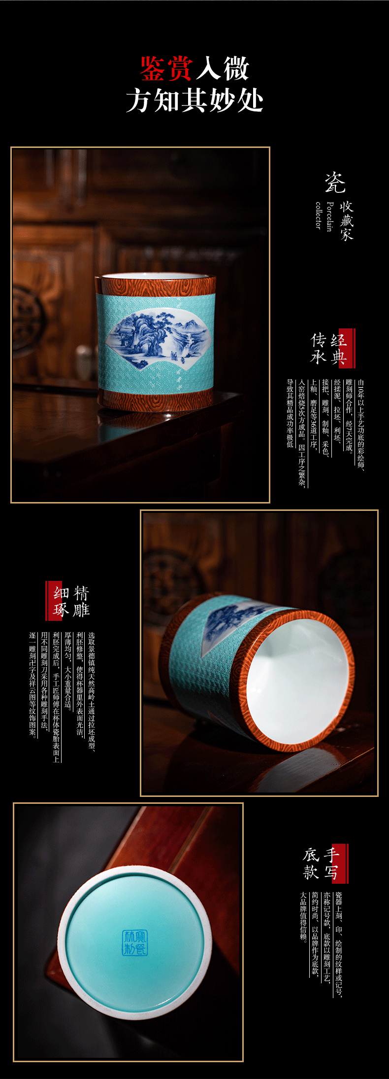 【宝瓷林】单杯 天青墨彩山水束腰杯