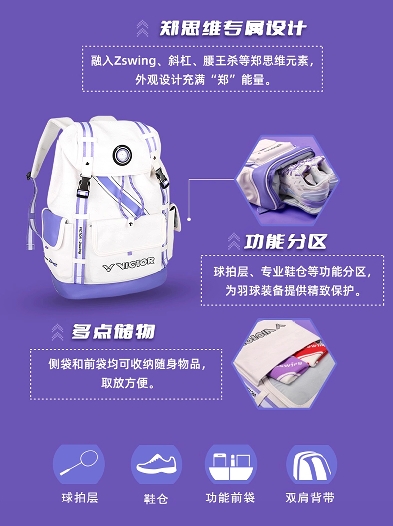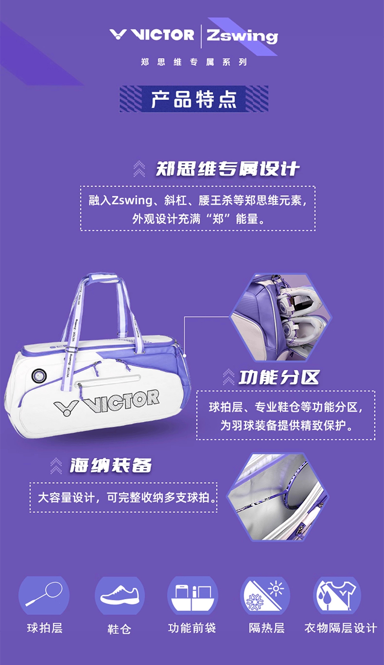 VICTOR威克多胜利羽毛球包郑思维专属系列BG1101ZSW迷你包 BR5056ZSW双肩背包 BR5656ZSW大容量矩形包