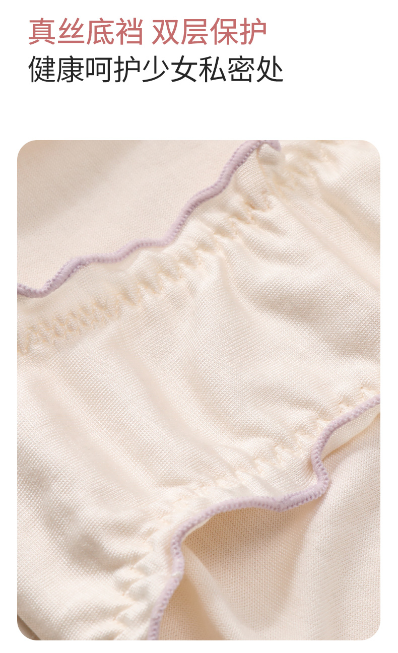 【2条装】金三塔少女真丝内裤女100%桑蚕丝发育期绢丝裸感无痕中腰三角裤女(内裤私密物品不支持退换货) BBY030D