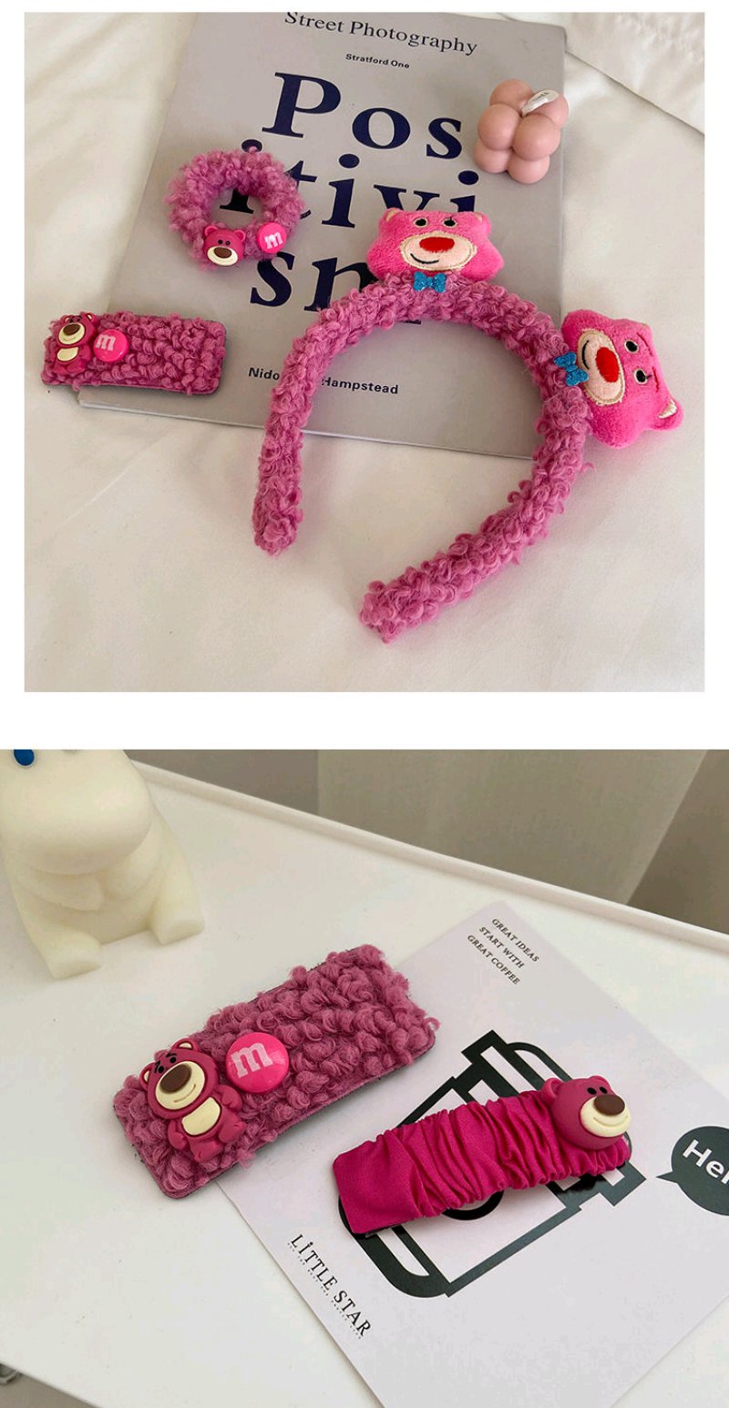 立体小熊发箍可爱大肠发圈甜美发饰洗脸头箍卡通草莓熊羊羔毛发夹