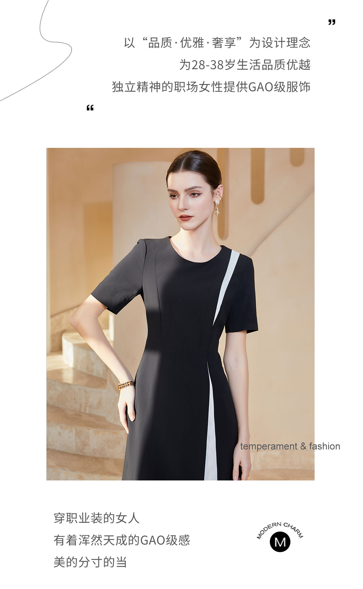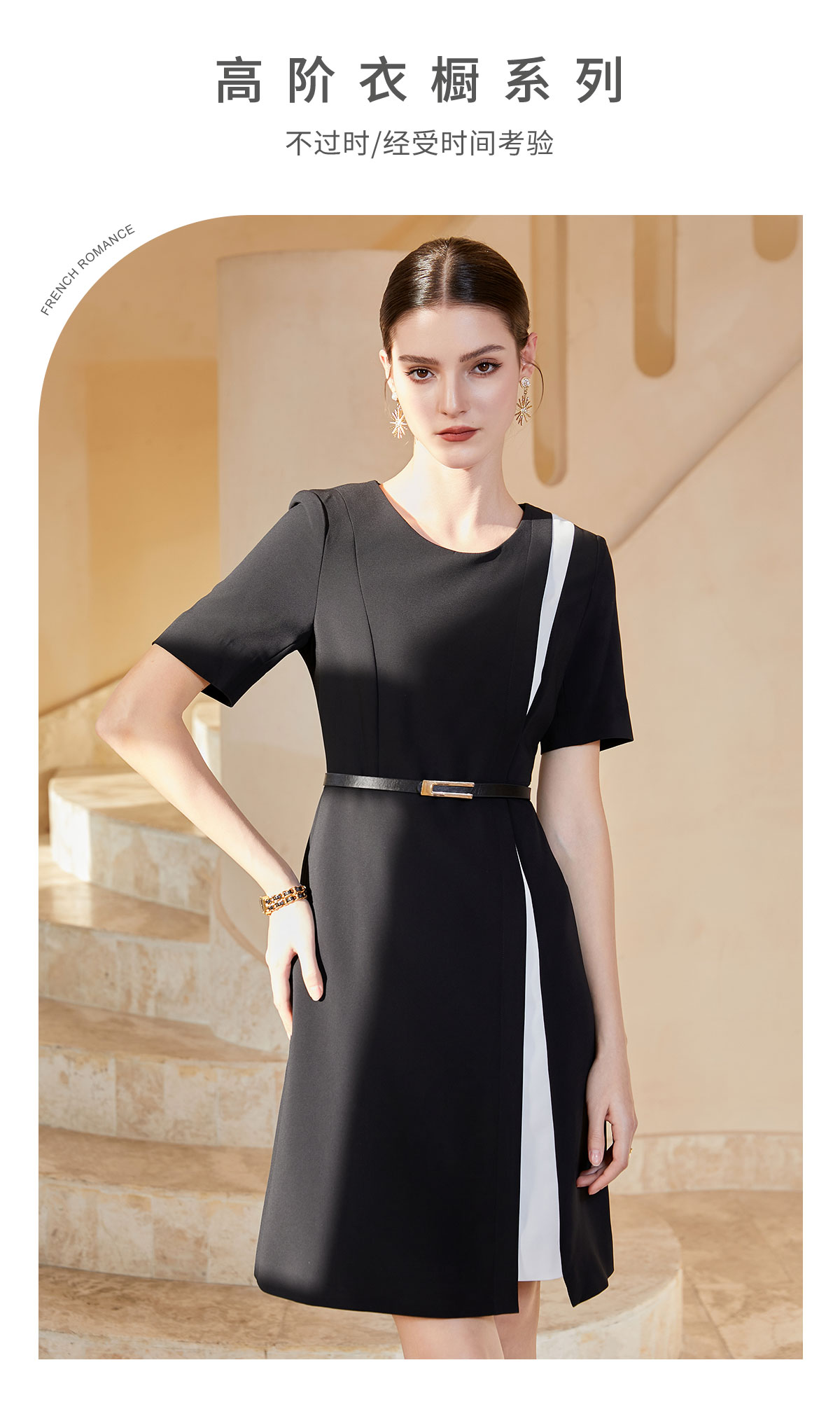 AD时尚大气连衣裙女轻熟风黑色圆领西装裙减龄通勤职业装a字裙