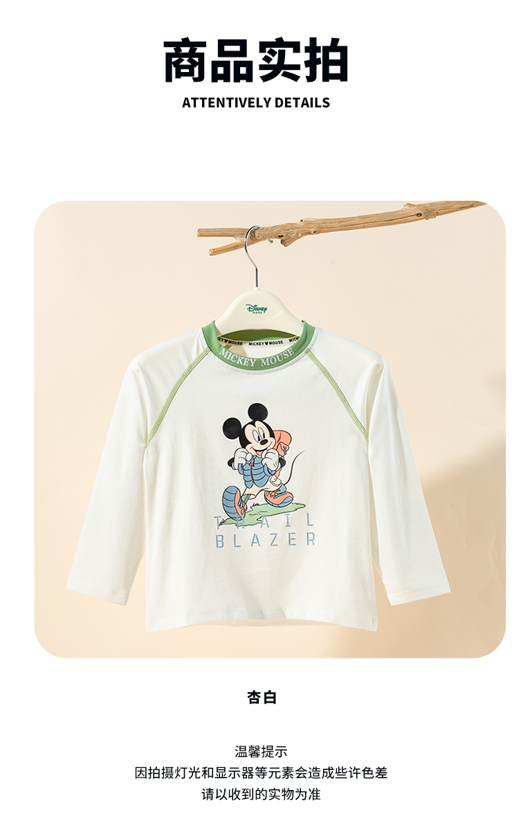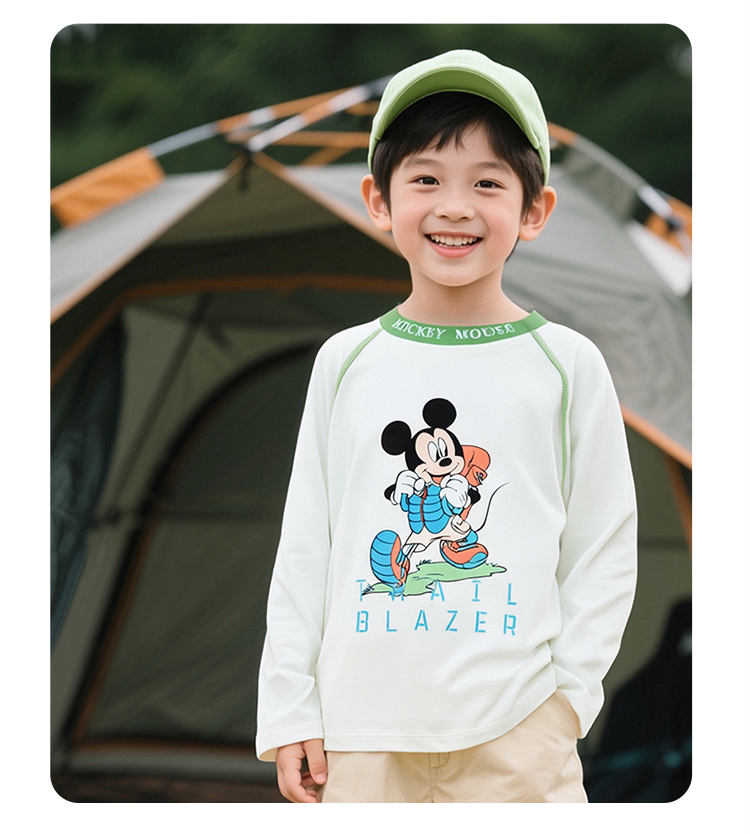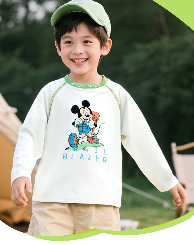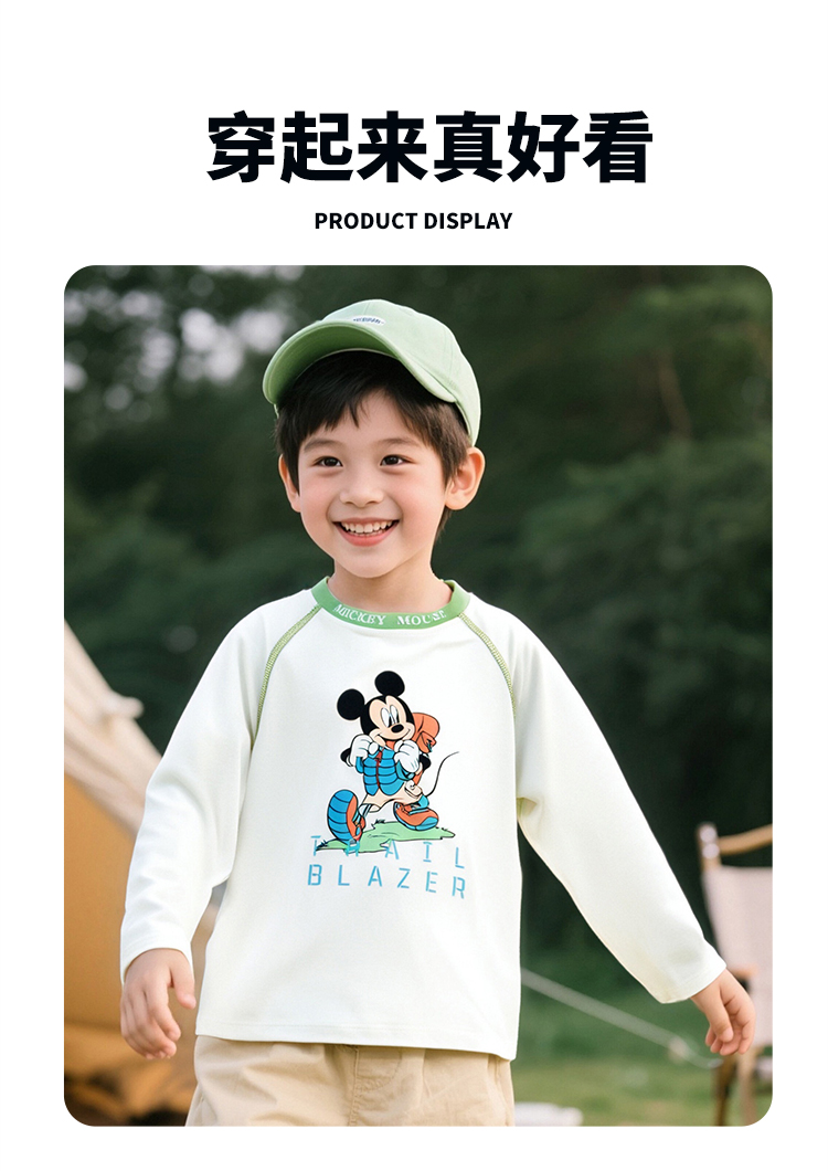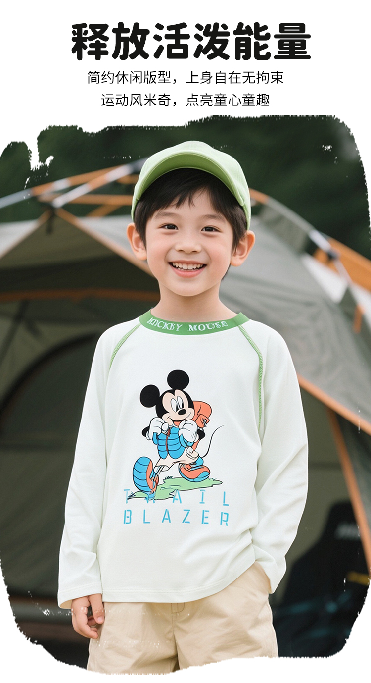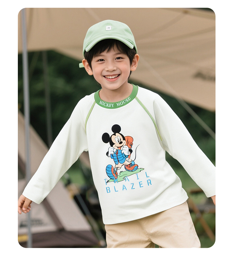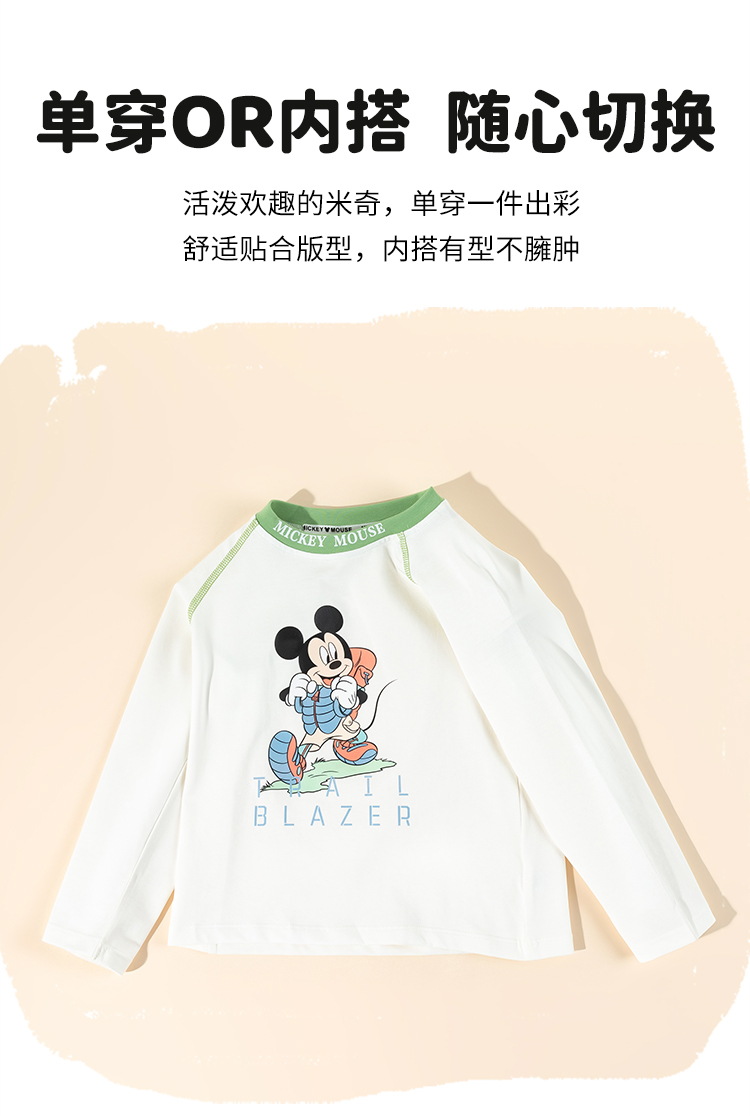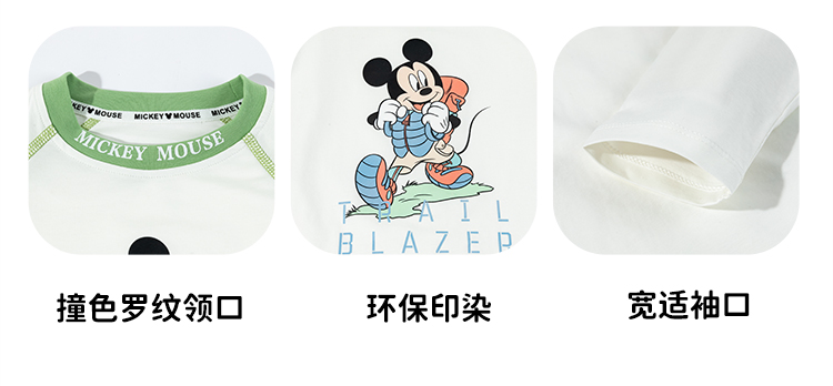 迪士尼米奇撞色插肩袖T恤25春秋新款男童亲肤棉弹上衣打底衫XD1ES023