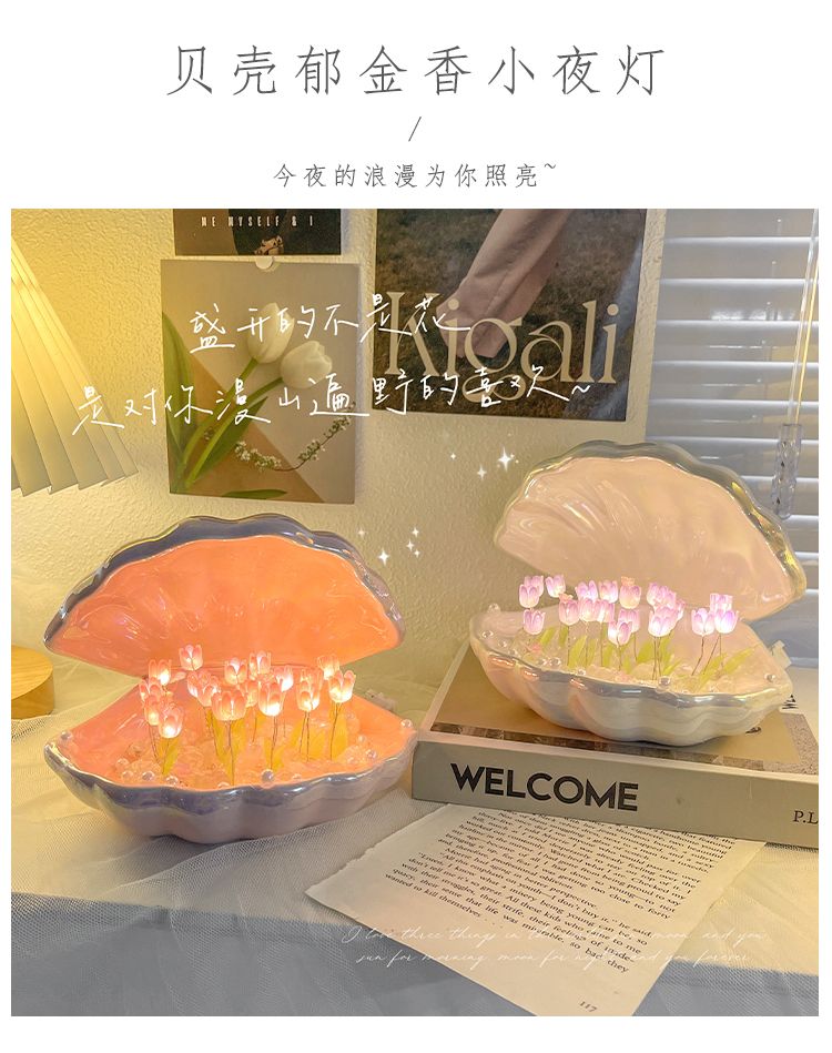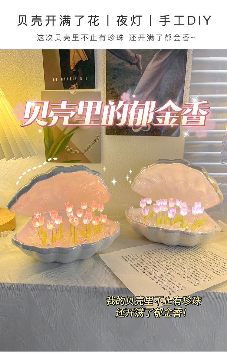 陶瓷贝壳郁金香小夜灯ins创意手工diy制作七夕生日礼物送女生闺蜜