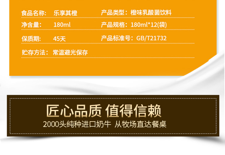 [秒杀]乐享奇橙乳酸菌饮品180ml*12袋,生产日期3月23日,保质期45天