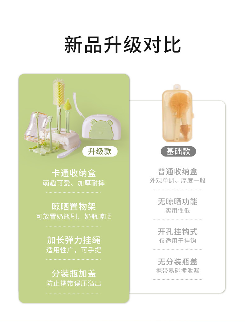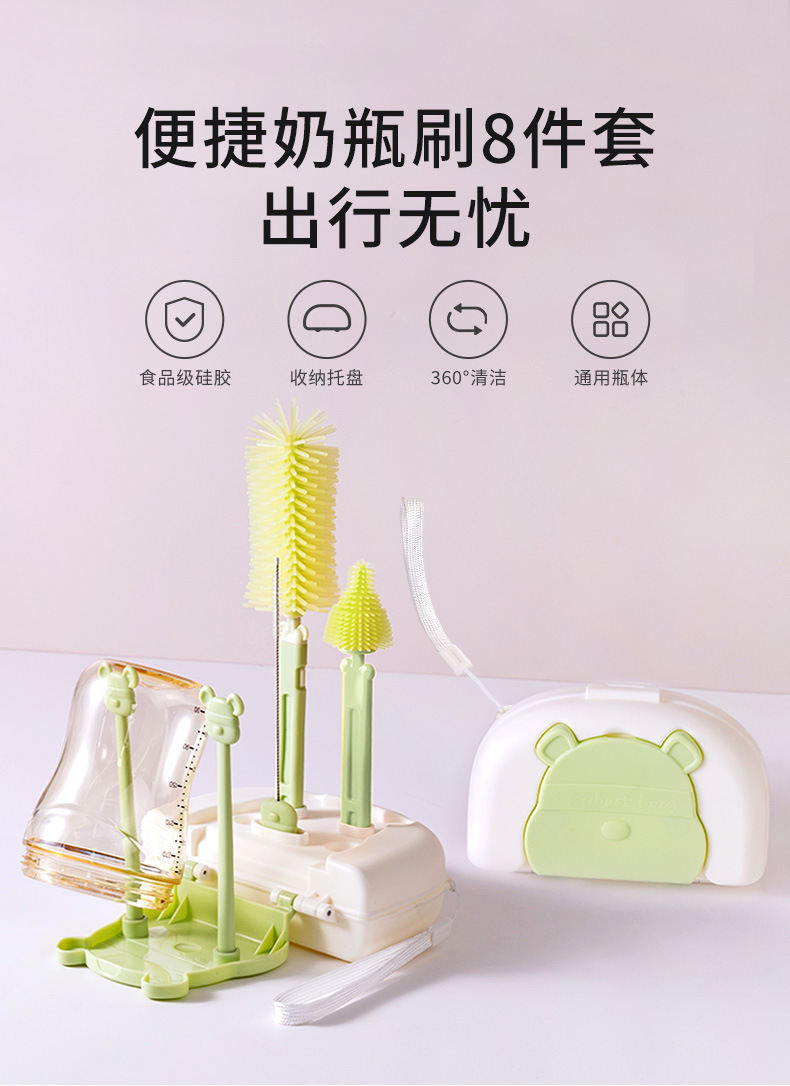 【便携奶瓶刷8件套!出行无忧】硅胶奶瓶刷便携式奶瓶刷套装婴儿专用奶瓶清洗涮旅行装收纳沥水架